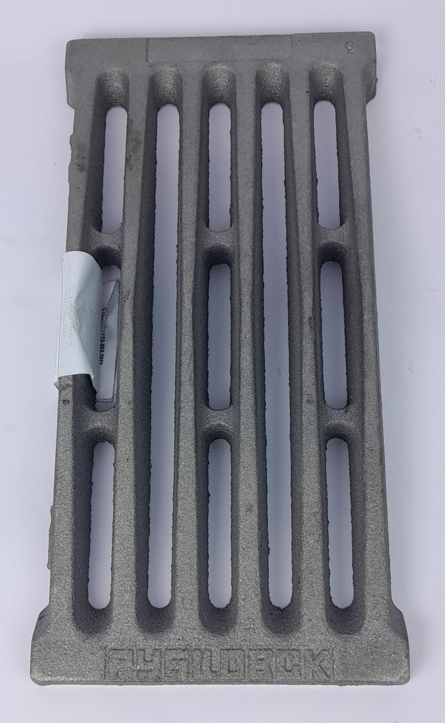 Описание: Колосниковая решётка РУ-5 — чугунная односекционная решётка прямоугольной формы, предназначенная для установки в топках отопительных и варочных печей, котлов, каминов и барбекю. Обеспечивает эффективную подачу воздуха снизу, стабильное горение твёрдого топлива и удобное удаление золы в зольник. Основные характеристики: Рабочий размер: 300×150 мм Габариты: 305×155 мм (с учётом кромки) Высота: 35 мм Вес: 3,705 кг Материал: чугун Тип: прямоугольная (Р — прямоугольное исполнение) Преимущества: - Высокая термостойкость — выдерживает длительную эксплуатацию при температурах до +1200 °C - Устойчивость к деформации и износу под нагрузкой - Щелевая структура способствует равномерному обдуву топлива и свободному проваливанию золы - Повышает КПД за счёт оптимальной тяги и полного сгорания - Плотно устанавливается в посадочное место, не шатается при эксплуатации Назначение: Подходит для печей среднего размера, используемых в быту, на даче, в бане. Эффективна при работе на дровах, угле, брикетах. Уход: 1) Очищайте от золы и нагара после полного остывания топки 2) Избегайте резкого охлаждения раскалённой решётки водой — это может вызвать растрескивание 3) При длительном хранении протрите тонким слоем технического масла для защиты от коррозии Надёжная чугунная колосниковая решётка РУ-5 — важный элемент эффективной и безопасной работы печи. Прочность, точность и долговечность в каждой детали.