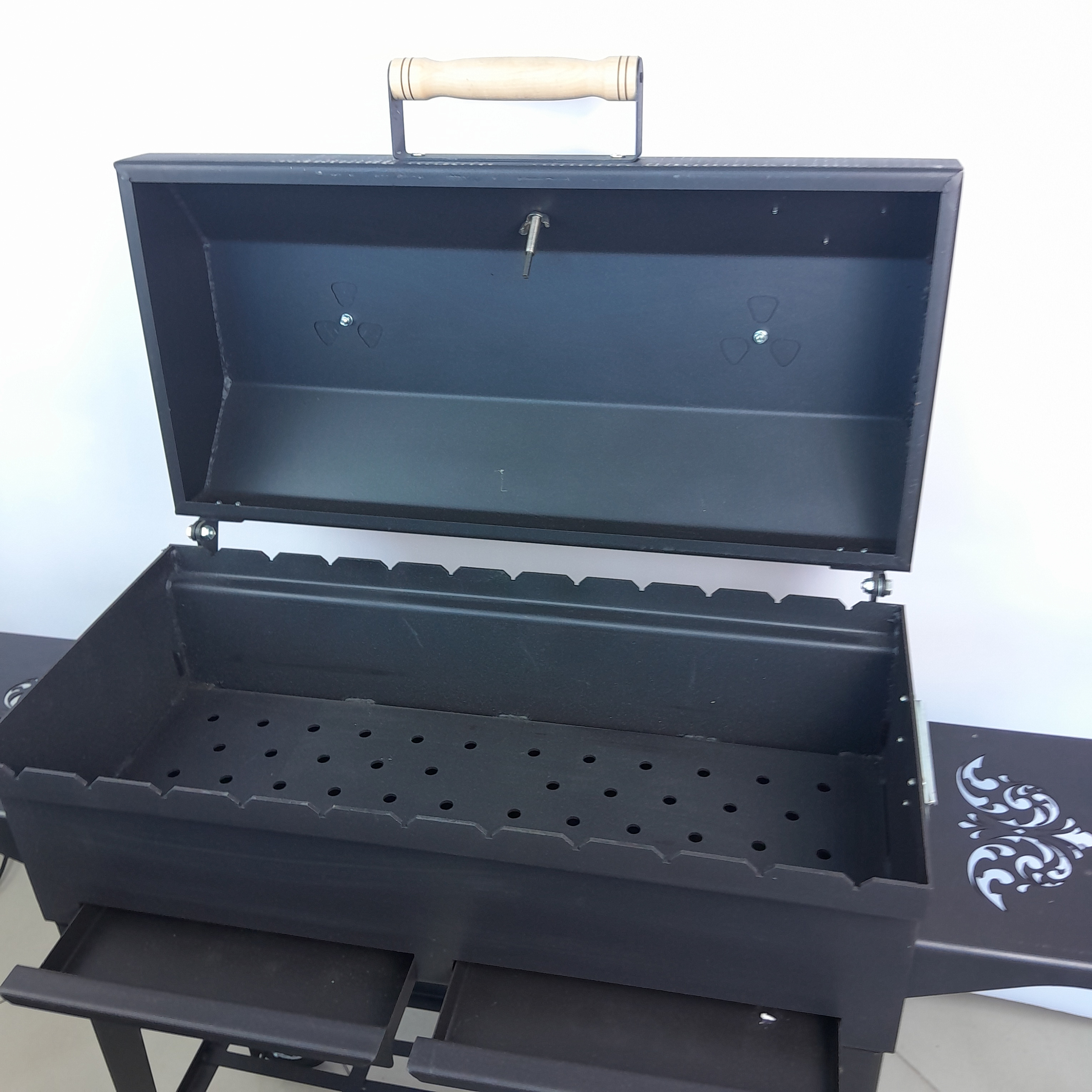 Описание: Гриль-барбекю «Дачный» — компактная стальная установка для приготовления шашлыка, барбекю, гриля и казанов на даче, в загородном доме или на участке. Предназначен для ежедневного использования в сезон и отличается простотой, надёжностью и удобством в эксплуатации. Основные характеристики: Длина: 750 мм Ширина: 390 мм Высота: 950 мм Вес: 42 кг Материал: сталь Конструкция и особенности: - Открытая топка для угля с вместительной жарочной поверхностью - Удобная рабочая высота — не требуется наклоняться при готовке - Устойчивые ножки обеспечивают безопасность на ровной поверхности Преимущества: 1) Универсальность — можно жарить шашлык, готовить на решётке, варить в казане 2) Простота в использовании и очистке 3) Не требует фундамента — устанавливается на ровную, негорючую поверхность 4) Подходит для угля, дров, брикетов Уход: - После остывания удалите золу и остатки жира - Храните под навесом или в сухом помещении - При длительном хранении рекомендуется обработка маслом для защиты от коррозии Гриль-барбекю «Дачный» — практичное решение для комфортного приготовления пищи на открытом воздухе. Надёжно, удобно, по-настоящему дачное качество.