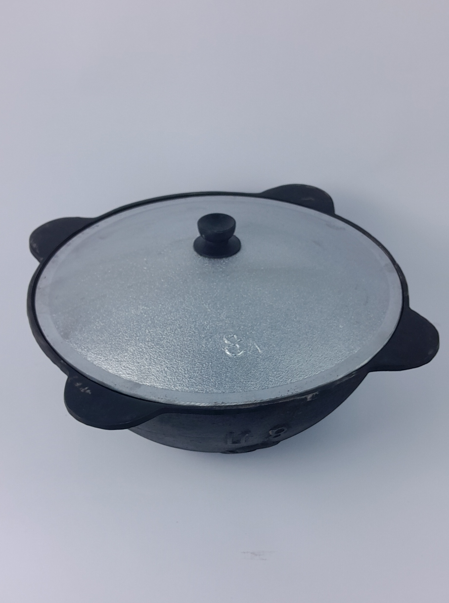 Описание: Казан чугунный 8-литровый — надёжная и долговечная посуда для приготовления блюд на открытом огне, в печи или на плите. Благодаря круглому дну и массивной конструкции из высококачественного чугуна, казан идеально подходит для тушения, варки, жарки и запекания. Используется для приготовления плова, шурпы, супов, рагу, компотов и других блюд, требующих равномерного и глубокого прогрева. Основные характеристики: Объём: 8 л Диаметр: 32 см (по верхнему краю) Форма дна: круглое (подходит для установки в костре, на углях, в печи, на казане) Высота: 165 мм Габариты с ручками: 430×430 мм Вес: 9,4 кг Материал: чугун Комплектация: с крышкой Преимущества: - Высокая теплоёмкость чугуна — обеспечивает равномерный прогрев по всей поверхности и длительное сохранение тепла - Круглое дно — идеально для установки в костре, на углях или в специальных подставках (например, «Везувий») - Устойчивость к высоким температурам — подходит для интенсивного нагрева без риска деформации - Долговечность — при правильном уходе служит десятилетиями - Натуральный материал — не выделяет вредных веществ при нагреве Назначение: Идеален для использования на даче, в бане, на пикнике, в походе, в загородном доме или в уличной кухне. Часто применяется в паре с коваными подставками, мангалами или печами под казан. Уход и эксплуатация: - Перед первым использованием тщательно промойте, просушите - После мытья — обязательно просушивайте на огне или в духовке - Не используйте агрессивные моющие средства и жёсткие губки - Храните в сухом месте, при необходимости — смажьте внутреннюю поверхность тонким слоем масла для защиты от коррозии Казан чугунный 8 л с крышкой — это выбор тех, кто ценит традиции, качество и настоящий вкус блюд, приготовленных с дымком и заботой. Надёжный спутник в парной, на природе и на кухне.