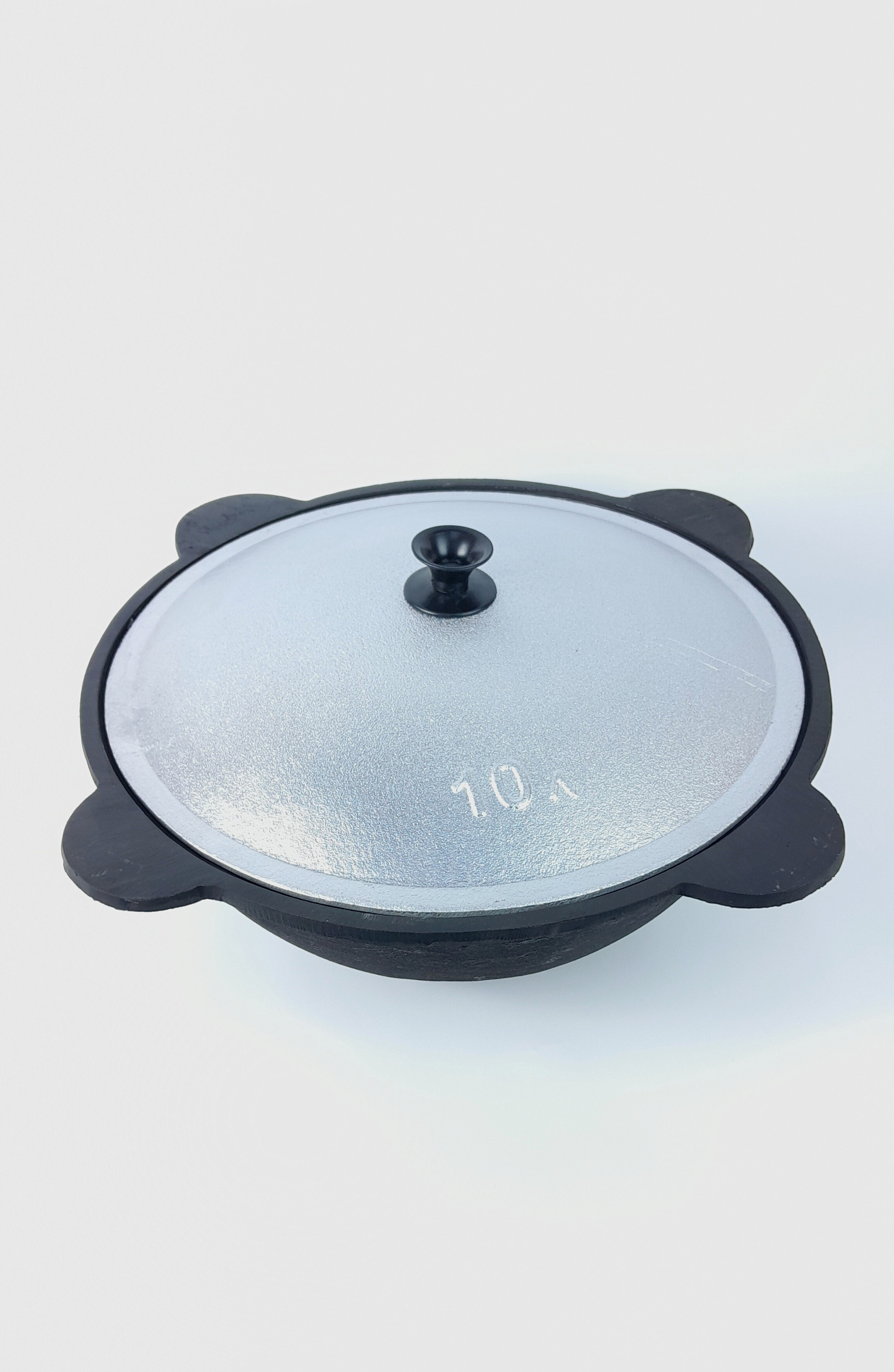 Казан чугунный на 10 литров с крышкой и плоским дном