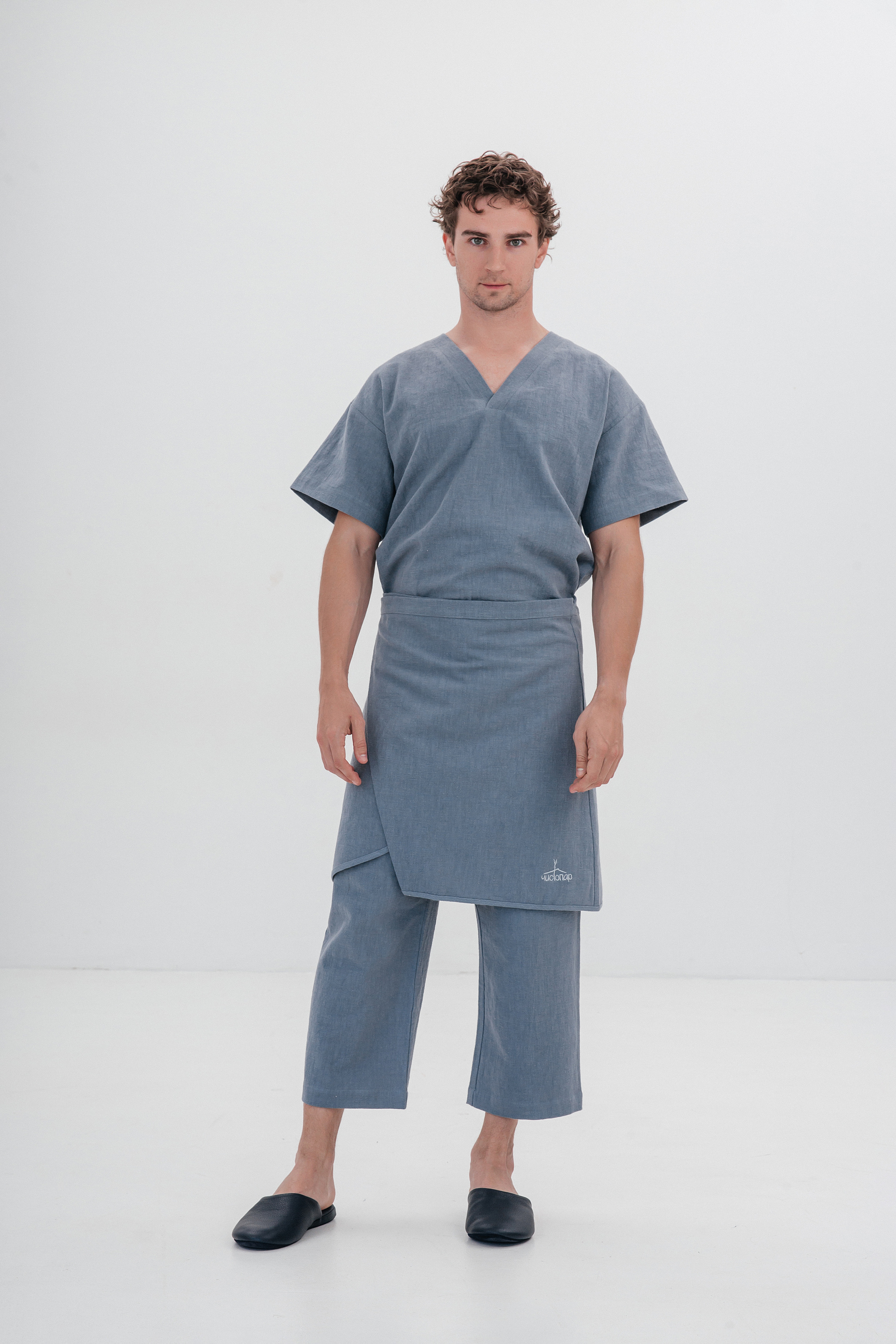 Описание: Мужской банный килт Чистопар — серо-голубой, 100% крапива Размер: M–L Лёгкий, свободный, по-настоящему натуральный — этот килт создан для тех, кто чувствует баню кожей, а не просто проходит ритуал. От бренда Чистопар, где каждая вещь — результат личного опыта, а не трендов. Сшит из 100% крапивы — ткани, которую ценили ещё наши предки за её прочность, мягкость и способность «дышать». Крапива не раздражает кожу, не накапливает статику, легко впитывает влагу и остаётся прохладной даже в самой жаркой парной. Со временем она не изнашивается — она становится ближе к телу, как старый друг. Крой — свободный, с естественной драпировкой: Длина — 52 см — идеально закрывает бёдра, не стесняя движений и не мешая париться. Ширина по бёдрам — 105 см — создаёт воздушный, ненавязчивый силуэт. Низкая посадка и пояс тканевый — никакого давления, только лёгкая, надёжная фиксация без следов и дискомфорта. Цвет — серо-голубой: свежий, умиротворяющий, как утренний туман над рекой. Он не кричит, но запоминается — как и настоящая баня. Идеален как для тихого отдыха на полке, так и для работы в парной — там, где важна свобода, натуральность и доверие к своей одежде. Размер M–L — подходит на талию 86–100 см, бёдра 98–110 см. Свободный покрой без утяжки — только лёгкость и естественность. Уход: стирайте вручную или в деликатном режиме при 30°C. Сушите в расправленном виде — крапива быстро сохнет и с каждым разом становится мягче, сохраняя форму и прочность. Чистопар — потому что в бане важна не только температура пара, но и то, как вы себя чувствуете в момент покоя.