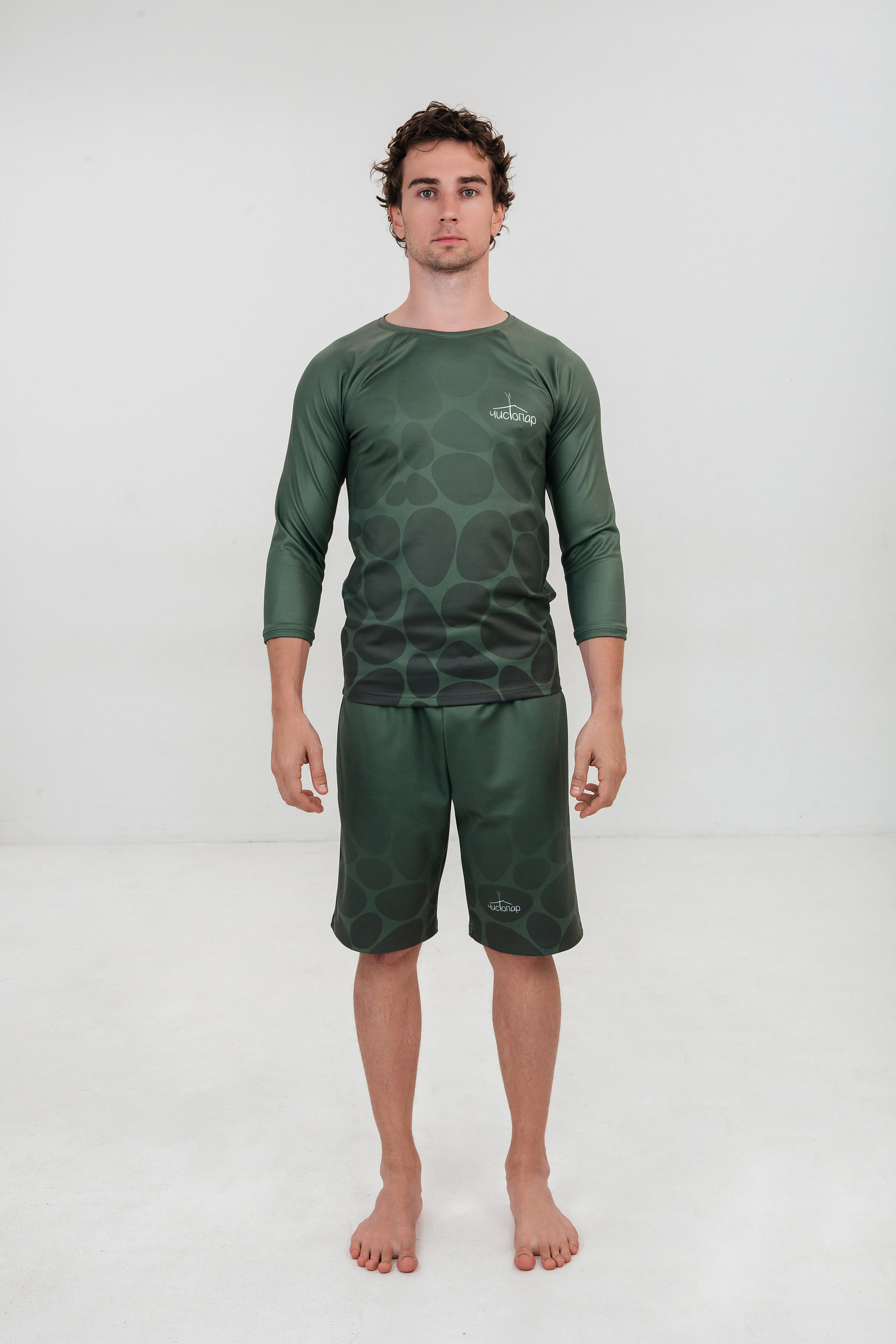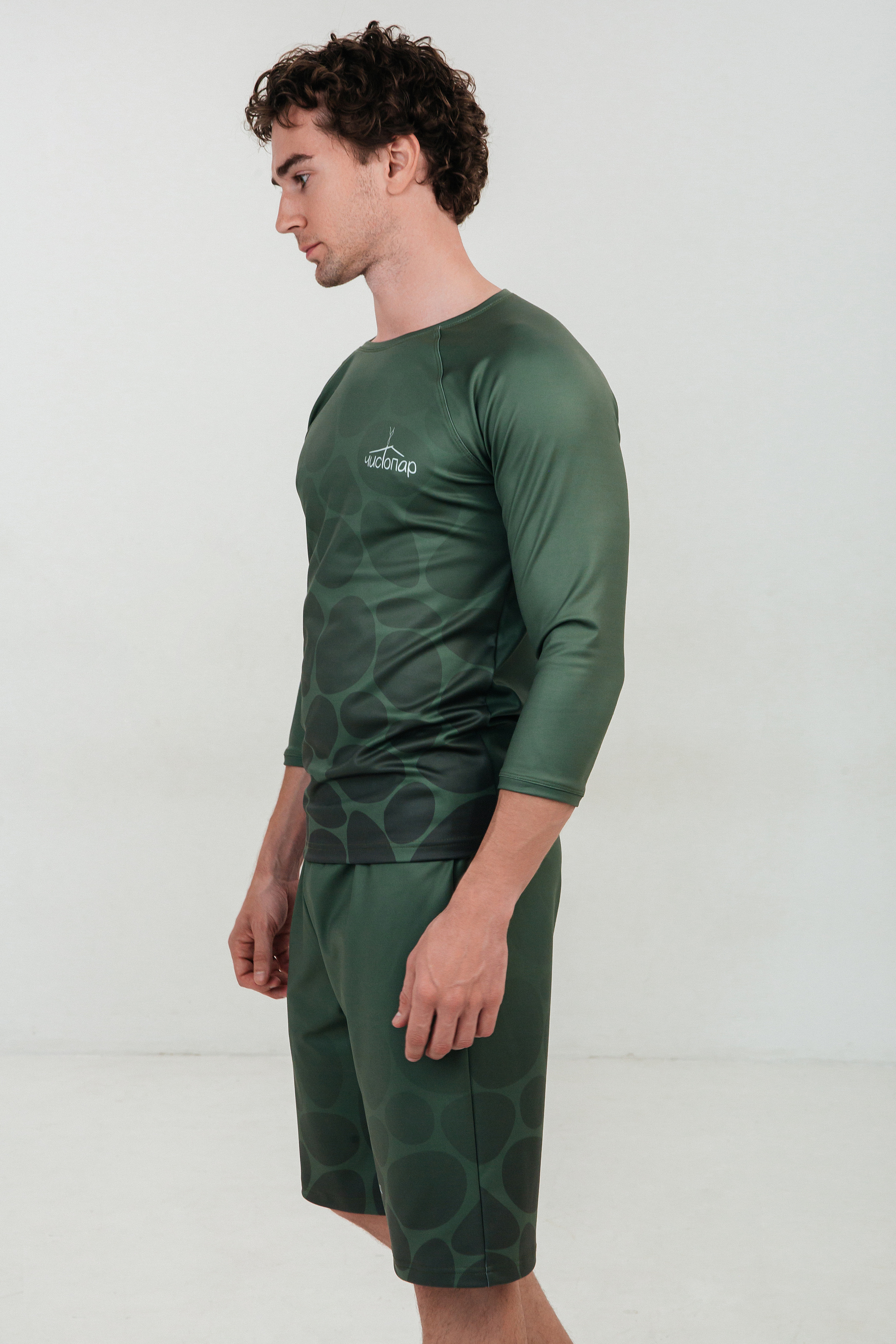 Описание: Мужской термо-рашгард Чистопар — зелёный Размер: M–L Лёгкий, облегающий и функциональный — этот рашгард создан для тех, кто хочет чувствовать себя уверенно и комфортно в парной, у бассейна или на отдыхе. От бренда Чистопар, где даже спортивная модель становится частью банного ритуала. Сшит из современного смешанного материала — полиэстера с добавлением эластана. Такая ткань: — быстро отводит влагу и сохнет в считанные минуты, — не теряет форму даже при активных движениях, — мягко облегает тело, не стесняя движений, — защищает кожу от лёгкого перегрева в парной и от трения при работе с веником. Крой — анатомический, с учётом естественных линий тела: Длина по переду — 67 см — прикрывает поясницу даже при наклоне. Ширина по груди — 92 см (46 см в половине) — обеспечивает плотную, но не сдавливающую посадку. Эластичные края по горловине и рукавам — не давят и не оставляют следов. Цвет — глубокий зелёный: сдержанный, мужественный и практичный — не маркий и отлично вписывается в атмосферу бани. Идеален как для новичков, которые хотят чувствовать себя скромнее в общественной бане, так и для опытных парильщиков и банщиков, ценящих функциональность и гигиеничность. Размер M–L — универсальный крой на обхват груди 92–100 см, с учётом эластичности ткани. Уход: машинная стирка при 30°C. Не требует глажки — просто повесьте сушиться после бани, и он готов к следующему использованию. Чистопар — потому что в бане важно всё: и качество пара, и то, во что вы одеты.