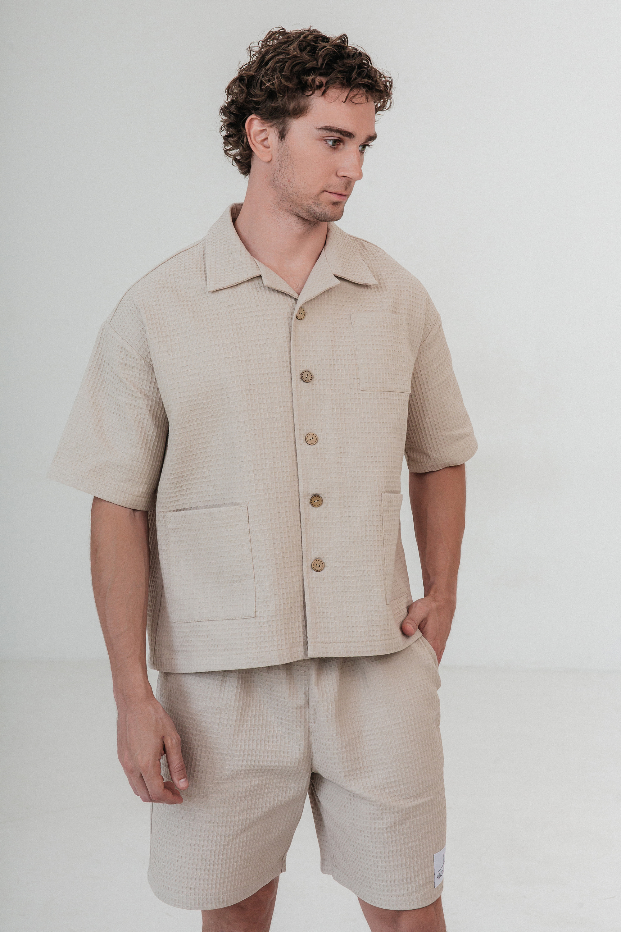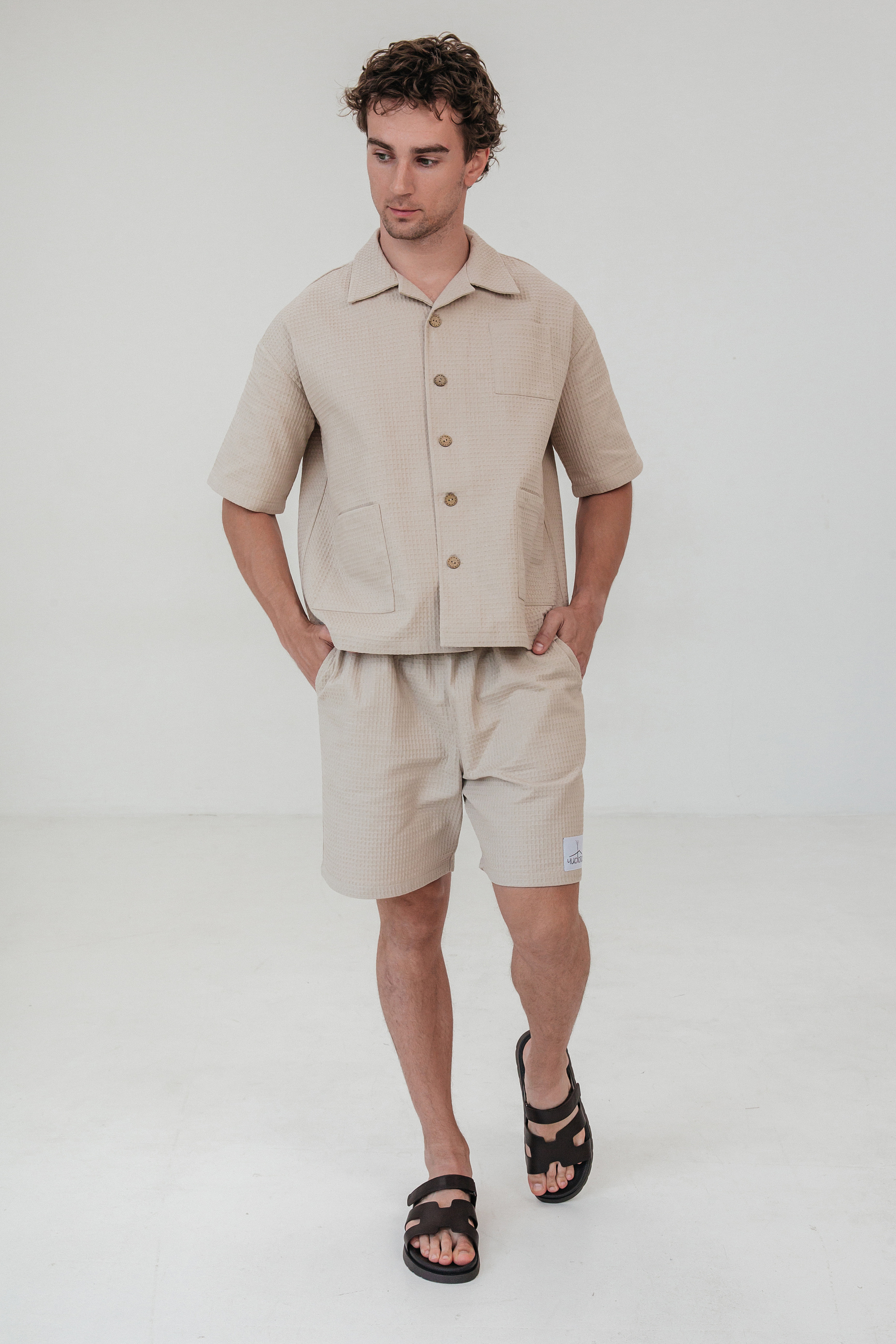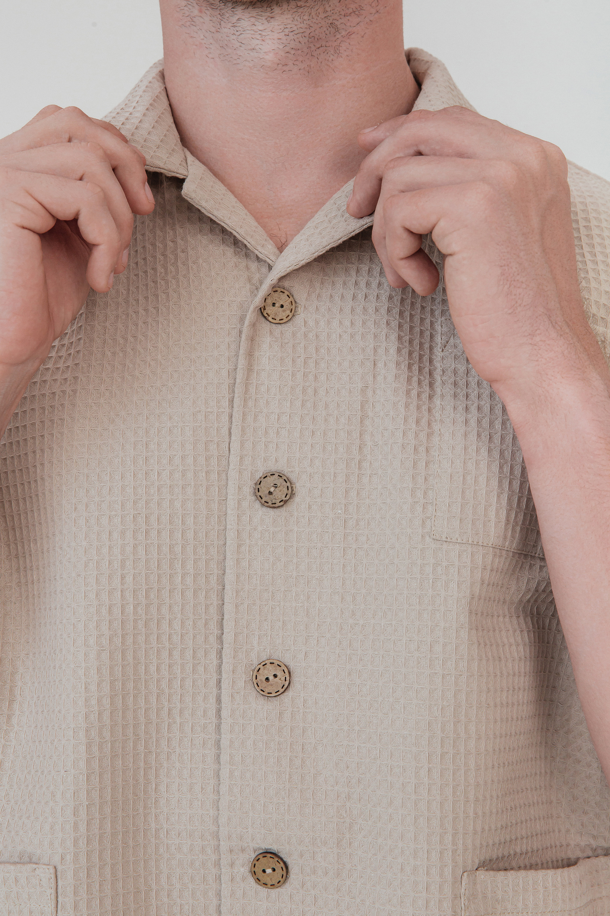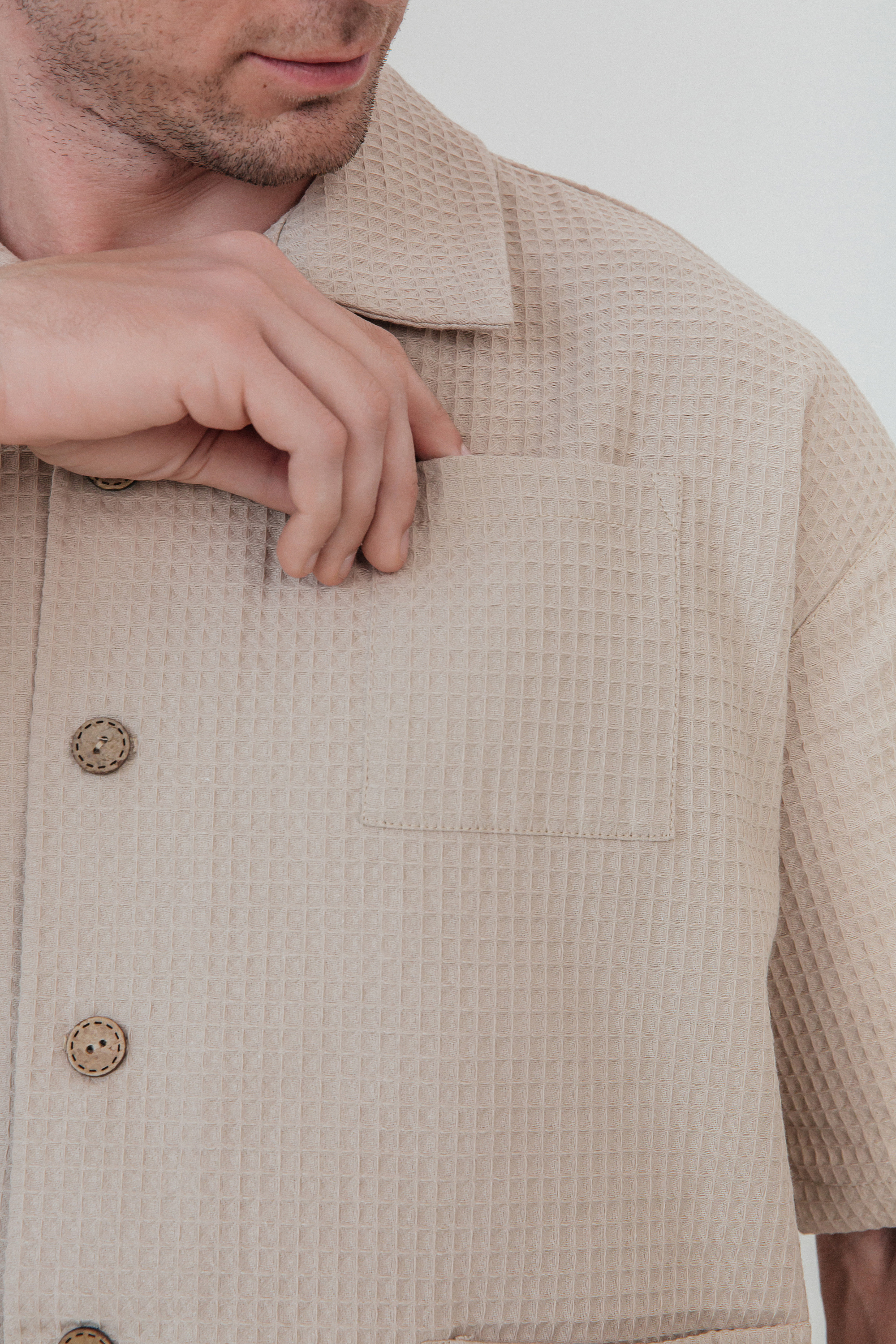 Рубашка мужская, цвет бежевый, Вафля Хлопок 100%, р-р XL-XXL