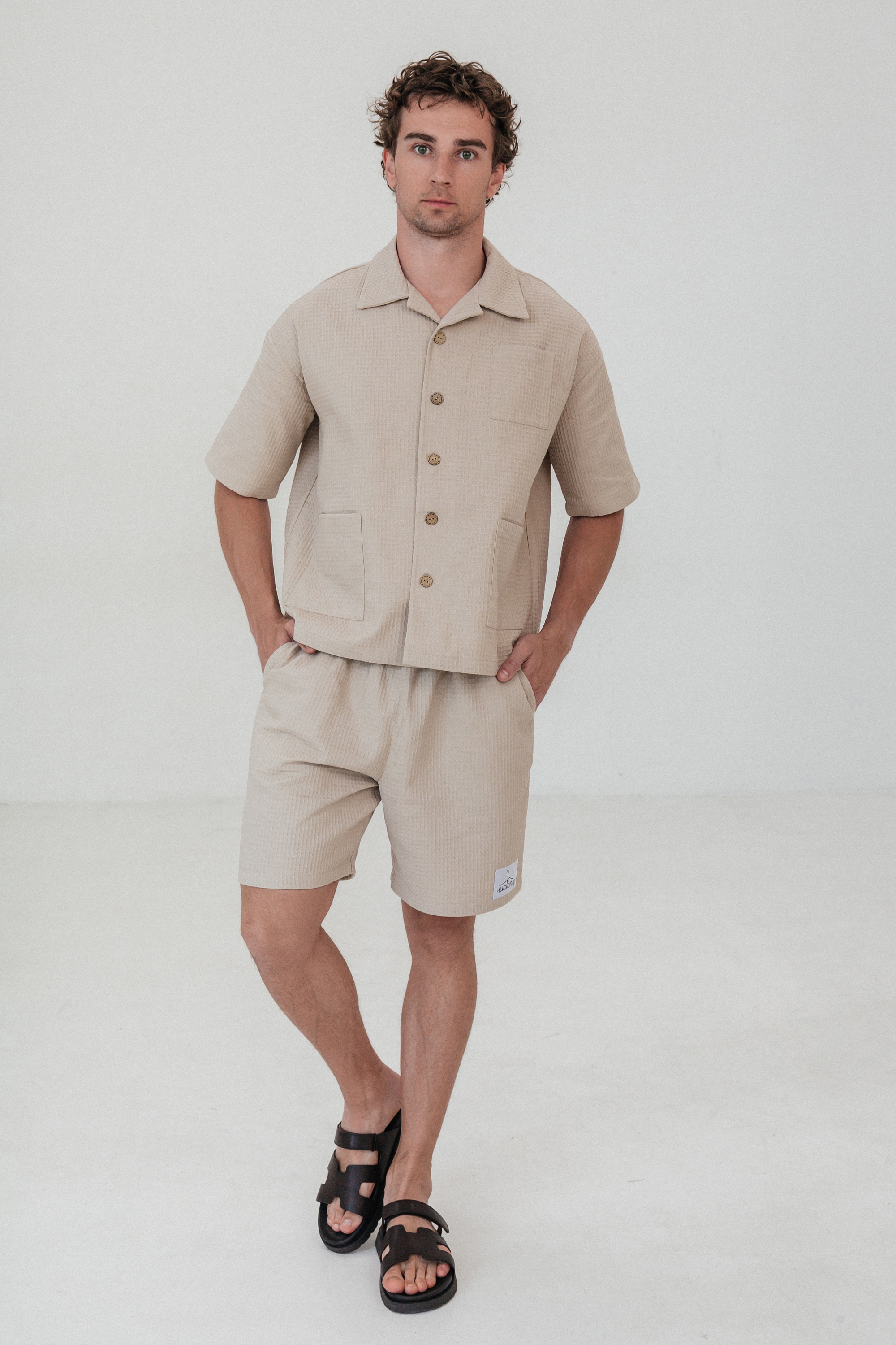 Шорты мужские, цвет бежевый, Вафля Хлопок 100%, р-р M-L