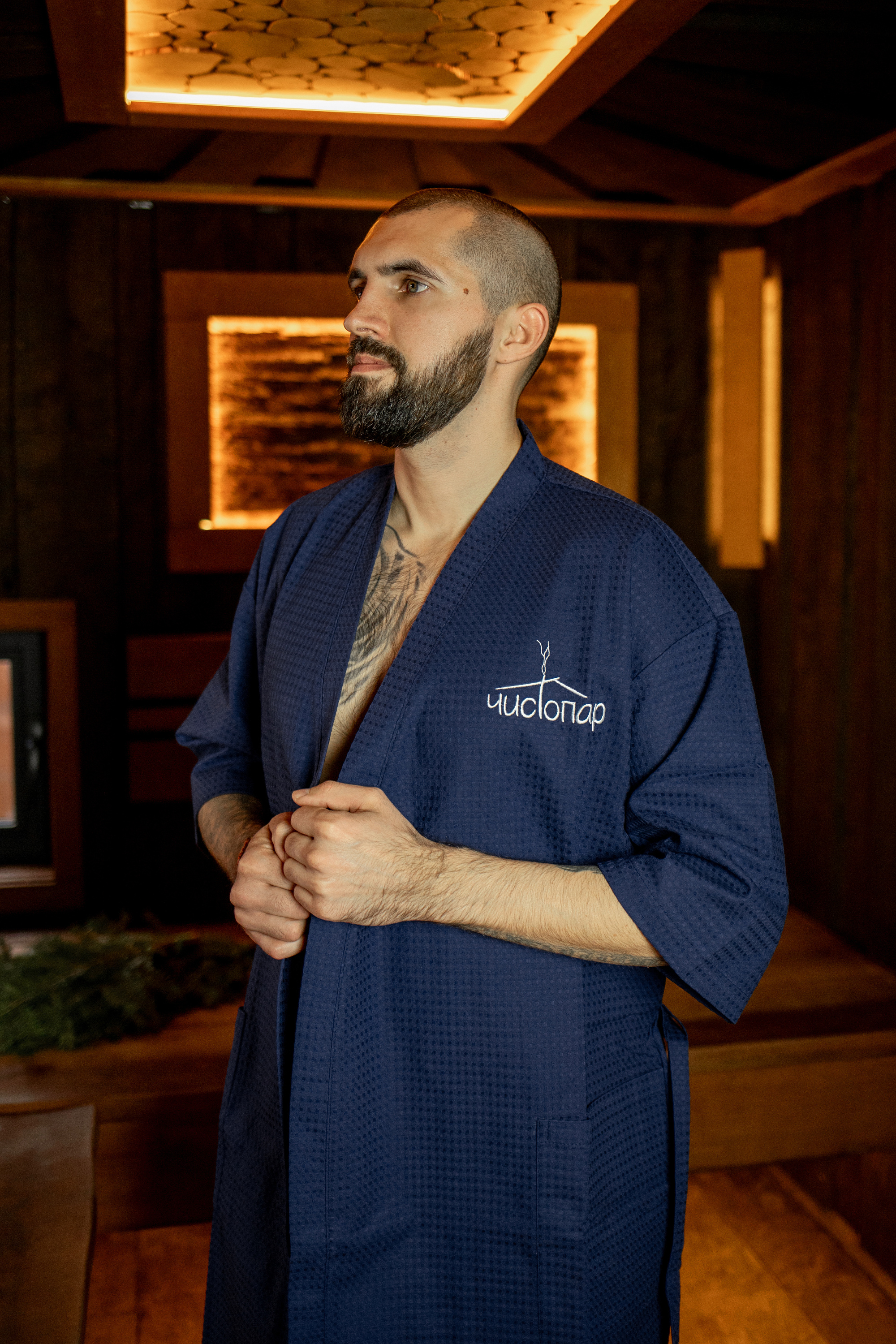 Халат вафельный мужской Чистопар — это надёжный, практичный и комфортный элемент банного комплекта, созданный для мужчин, ценящих традиции русской бани, качество натуральных материалов и удобство в использовании. Модель выполнена из 100% хлопка с характерным вафельным плетением, что обеспечивает превосходную впитываемость, быстрое высыхание, воздухопроницаемость и длительный срок службы. Халат идеально подходит для посещения парной, использования в предбаннике, после душа или как домашняя одежда.