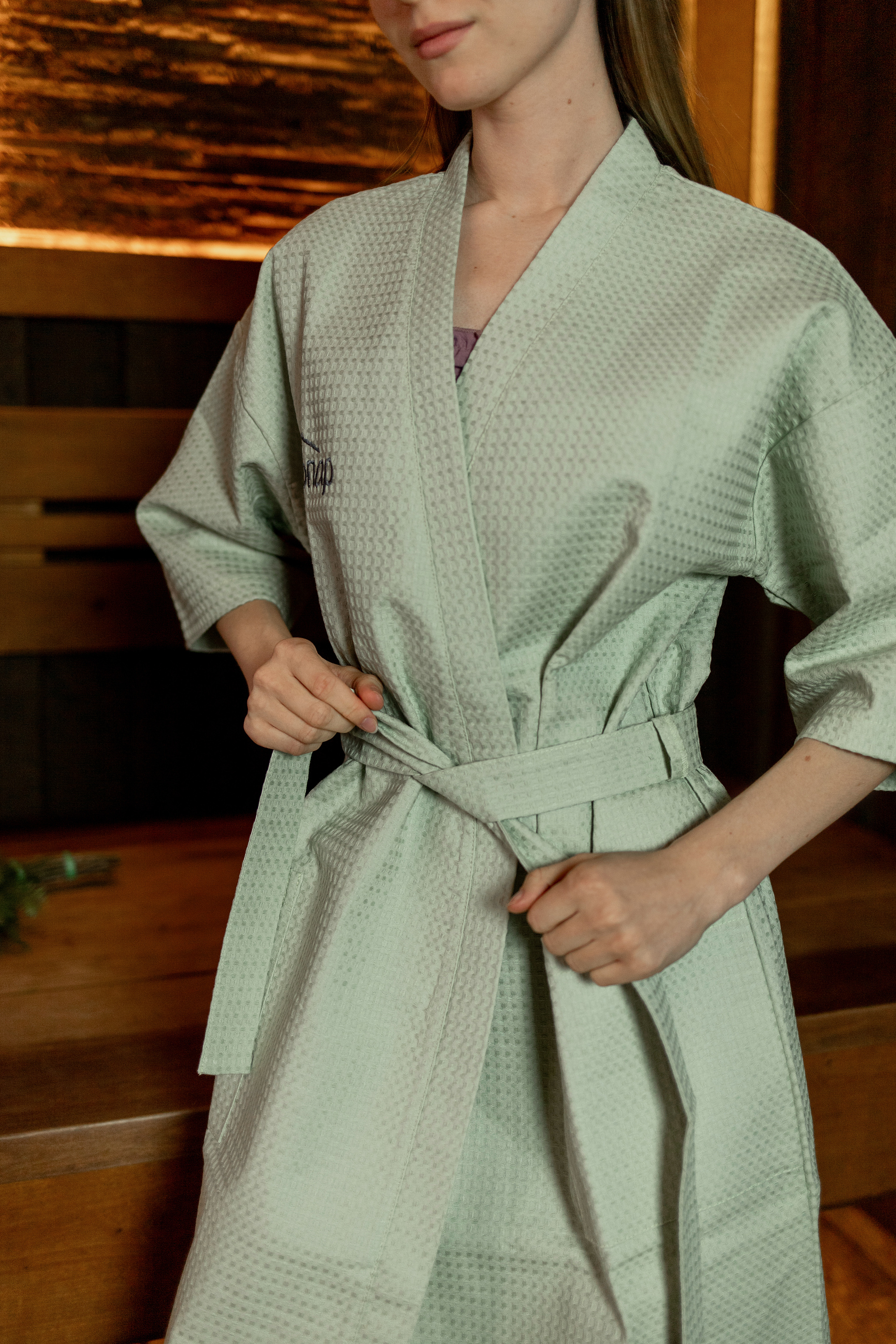 Применение: Используется после выхода из парной и в перерывах между заходами. Вафельная структура ткани способствует постепенному охлаждению тела без резкого перепада температуры. Подходит для предбанника, зоны отдыха и домашнего использования.