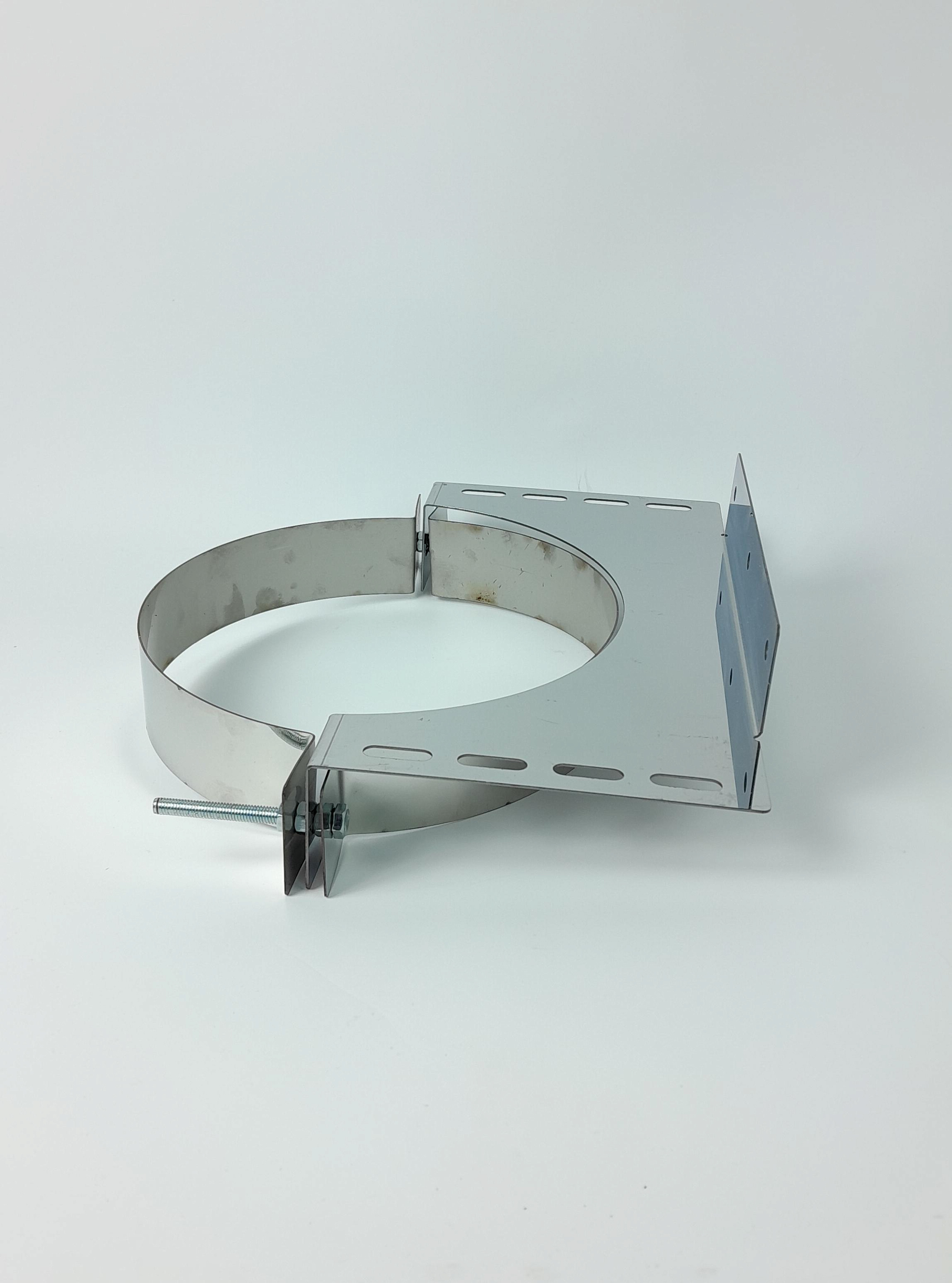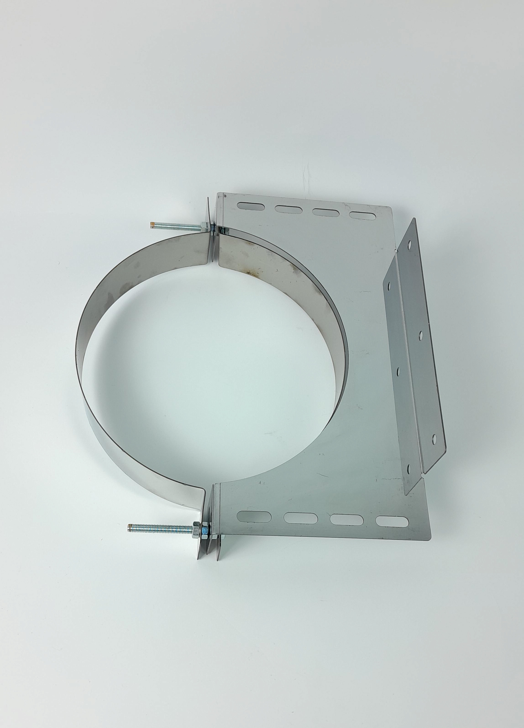 Описание: Универсальное крепление для фиксации дымохода к стене или опорной ферме. Надёжно удерживает трубу в заданном положении, предотвращает смещение при ветровых нагрузках и вибрации. Устанавливается каждые 2 метра длины дымохода в комплекте с подвесом. Важно: крепление фиксирует положение трубы, но не является разгружающим элементом. Для снятия веса с соединений используйте опорные кронштейны. Характеристики: — Диаметр трубы: 200–210 мм — Материал: нержавеющая сталь AISI 430 Преимущества: — Прочная фиксация без люфтов даже при вибрации печи — Устойчивость к коррозии — подходит для наружного монтажа — Простая установка — регулируется под угол стены без дополнительных переходников — Не деформируется при нагреве до +750 °C Как установить: 1. Закрепите кронштейн на стене анкерами (не входят в комплект). 2. Наденьте хомут на трубу и затяните болтами. 3. Соедините хомут с кронштейном. 4. Повторяйте установку каждые 2 метра по высоте дымохода. Установите универсальное крепление — и зафиксируйте дымоход надёжно без риска смещения.