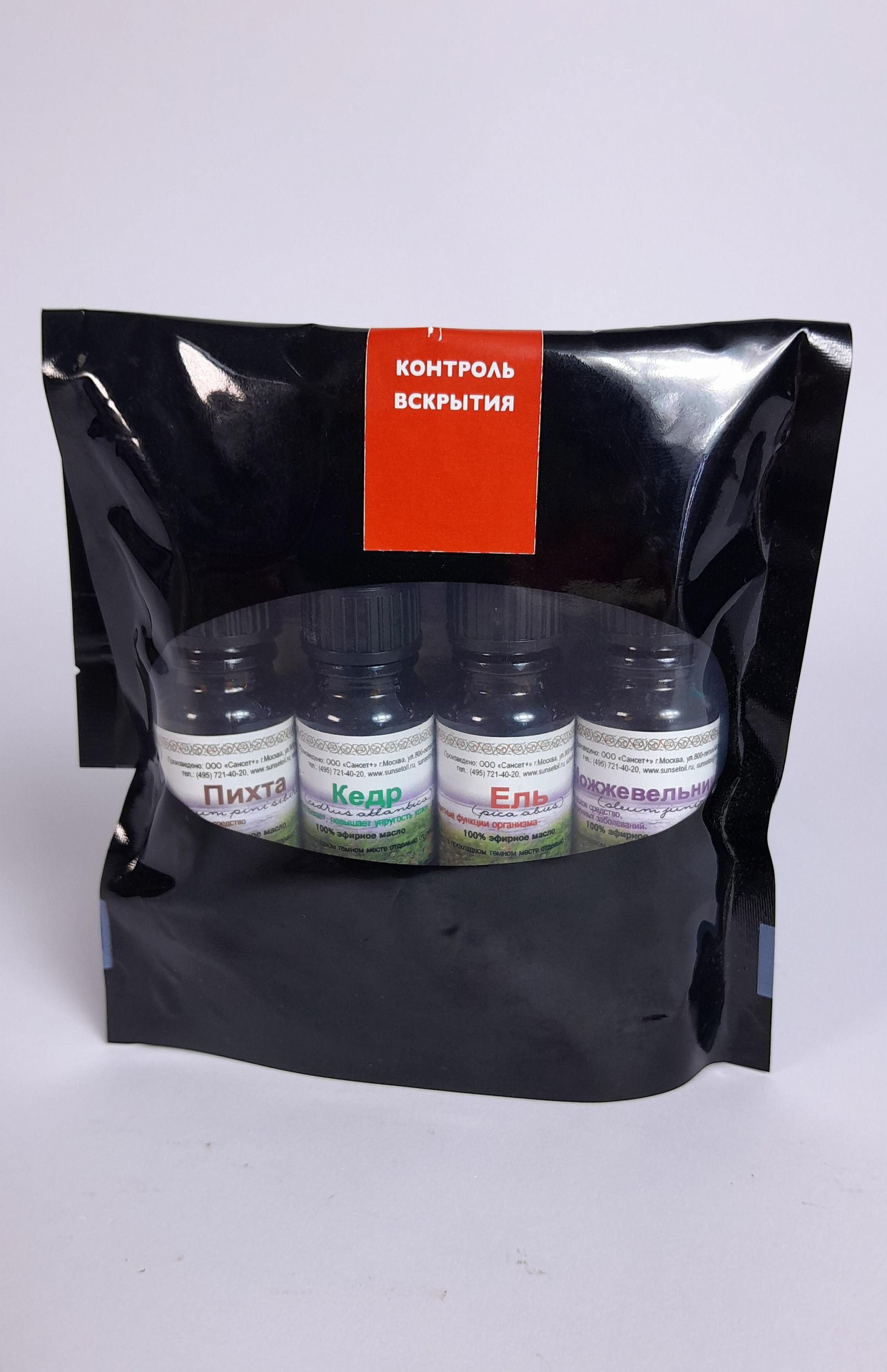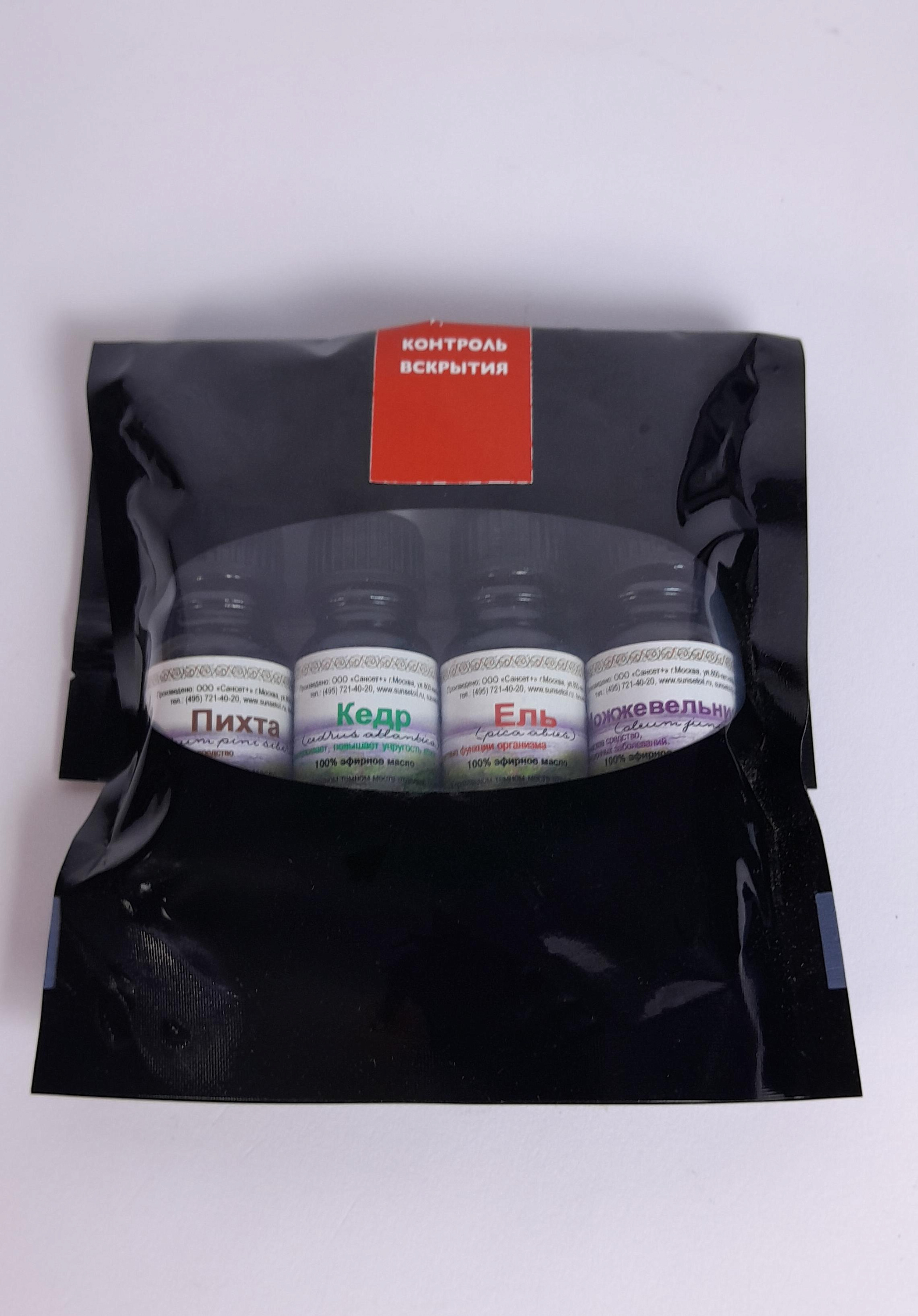 Подарочный набор в зип-лок 4 масла (10 мл.) + брошюра. Пихта, Кедр, Ель, Можжевельник