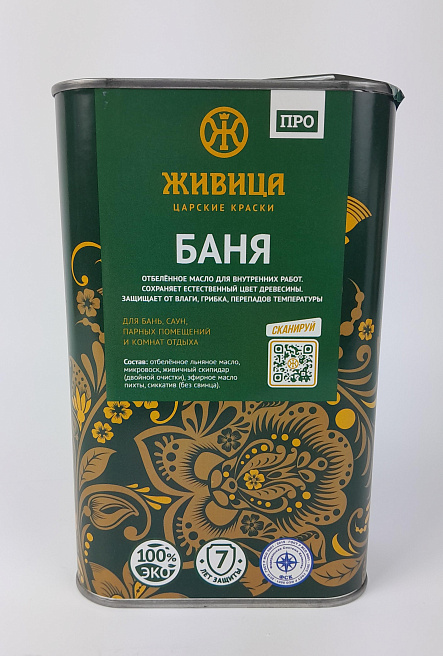 Описание: «Живица Про» — это специализированное масло для деревянных поверхностей в условиях высокой влажности и температуры. Оно создаёт матовое, дышащее покрытие с эффектом Soft-touch — приятное на ощупь, тёплое и шелковистое, без липкости и плёнки. Подходит для: - полок, скамеек, подголовников в парной, - стен и полов в моечной, - мебели и отделки в комнате отдыха. Ключевые свойства: 1. Не меняет цвет и текстуру дерева — сохраняет естественный вид 2. Защищает от влаги, грибка, плесени и загрязнений 3. Устойчиво к перепадам температур до +100 °C 4. Мягкое матовое покрытие — комфорт при контакте с кожей 5. Безопасен для тела — состав на 100% натуральный 6. Рекомендуется наносить в 2 слоя для максимальной защиты Колеровка возможна, но только для поверхностей, не соприкасающихся с телом (например, стены, потолки, двери). Применение: - Древесина должна быть чистой, сухой и отшлифованной (зернистость Р120–180). - Нанесите первый слой кистью или хлопковой тканью вдоль волокон. - Через 6–12 часов — второй слой. - Полное высыхание — 24–48 часов при хорошей вентиляции. - Расход: ~1 л на 10–12 м² (в зависимости от породы и плотности древесины). Состав: 1) Отбелённое льняное масло 2) Микровоск 3) Скипидар живичный (натуральный растворитель) 4) Натуральная отдушка — пихта (лёгкий хвойный аромат, исчезает после высыхания) «Живица Про» — это не просто защита, а забота о комфорте и долговечности дерева в бане. Натурально, безопасно, с уважением к традициям и современным требованиям.