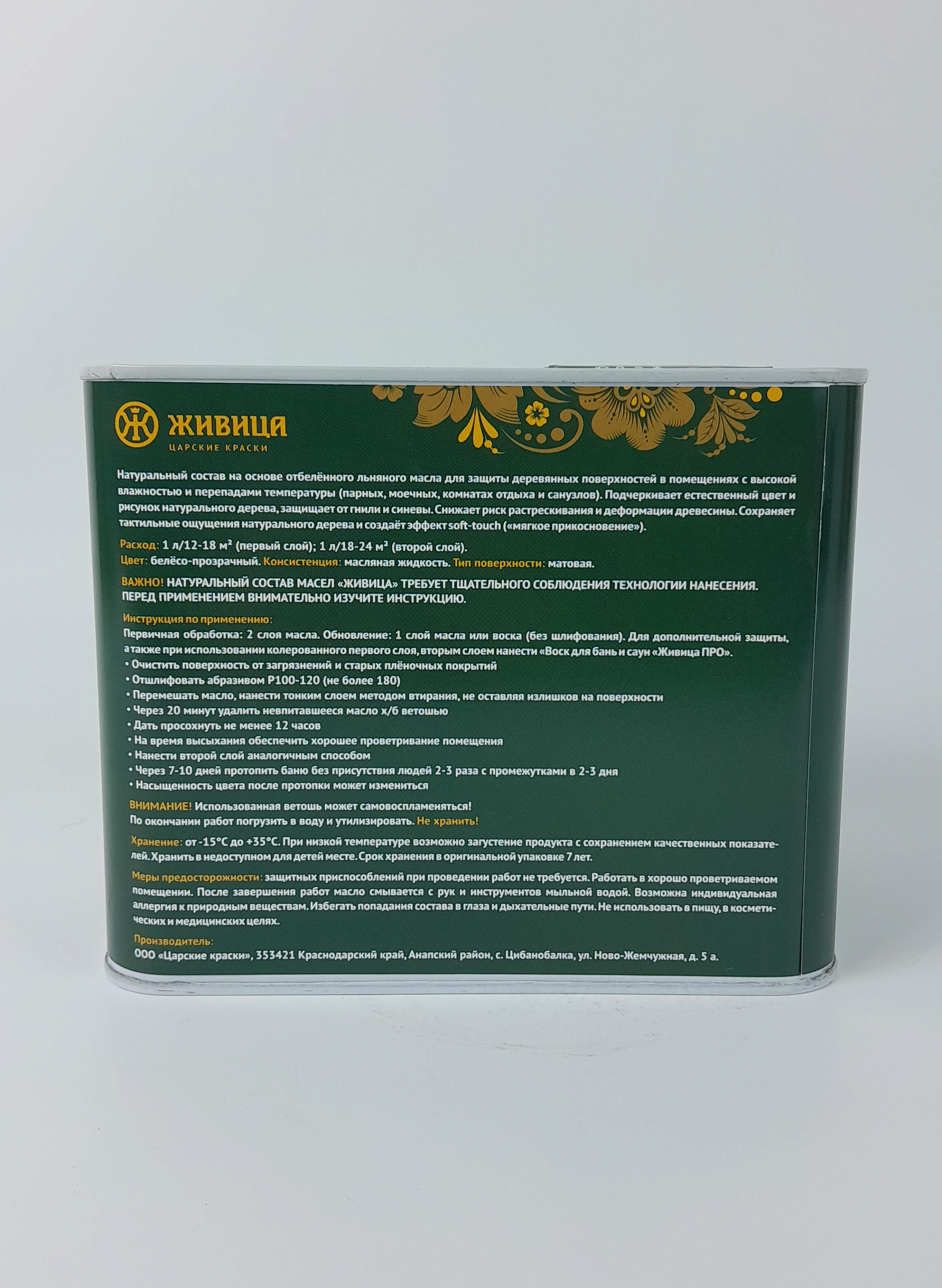 Описание: «Живица Про» — это специализированное масло для деревянных поверхностей в банях, саунах и других помещениях с высокой влажностью. Средство создаёт дышащее, матовое покрытие с эффектом Soft-touch — приятное на ощупь, тёплое и шелковистое. Подходит для: - полок и скамеек в парной, - стен и потолков в моечной, - мебели в комнате отдыха, - деревянных полов и дверей. Ключевые свойства: 1. Не меняет цвет древесины — сохраняет естественный оттенок и текстуру 2. Защищает от влаги, грибка, плесени и загрязнений 3. Устойчив к перепадам температур — не трескается при нагреве до +100 °C 4. Матовое покрытие с эффектом «мягкого прикосновения» 5. Безопасен для контакта с телом — состав на 100% натуральный 6. Рекомендуется наносить в 2 слоя для максимальной защиты Колеровка возможна, но только для поверхностей, не соприкасающихся с телом (например, стены, потолки). Применение: - Древесина должна быть чистой, сухой и отшлифованной (рекомендуется зерно Р120–180). - Нанесите первый слой кистью или тканью вдоль волокон. - Через 6–12 часов — второй слой. - Полное высыхание — 24–48 часов при хорошей вентиляции. - После высыхания поверхность становится водоотталкивающей, но остаётся паропроницаемой — дерево «дышит». Почему «Живица Про»? 1) Нет синтетических смол, ПАВ, растворителей на основе нефти 2) Пихтовая отдушка — лёгкий аромат хвои, без резких запахов 3) Микровоск усиливает защиту, но не образует плёнки — дерево остаётся живым 4) Подходит для всех пород дерева, включая липу, осину, ольху «Живица Про» — это выбор тех, кто ценит натуральность, безопасность и комфорт в бане. Защита, которая не прячет дерево, а раскрывает его лучшие качества.
