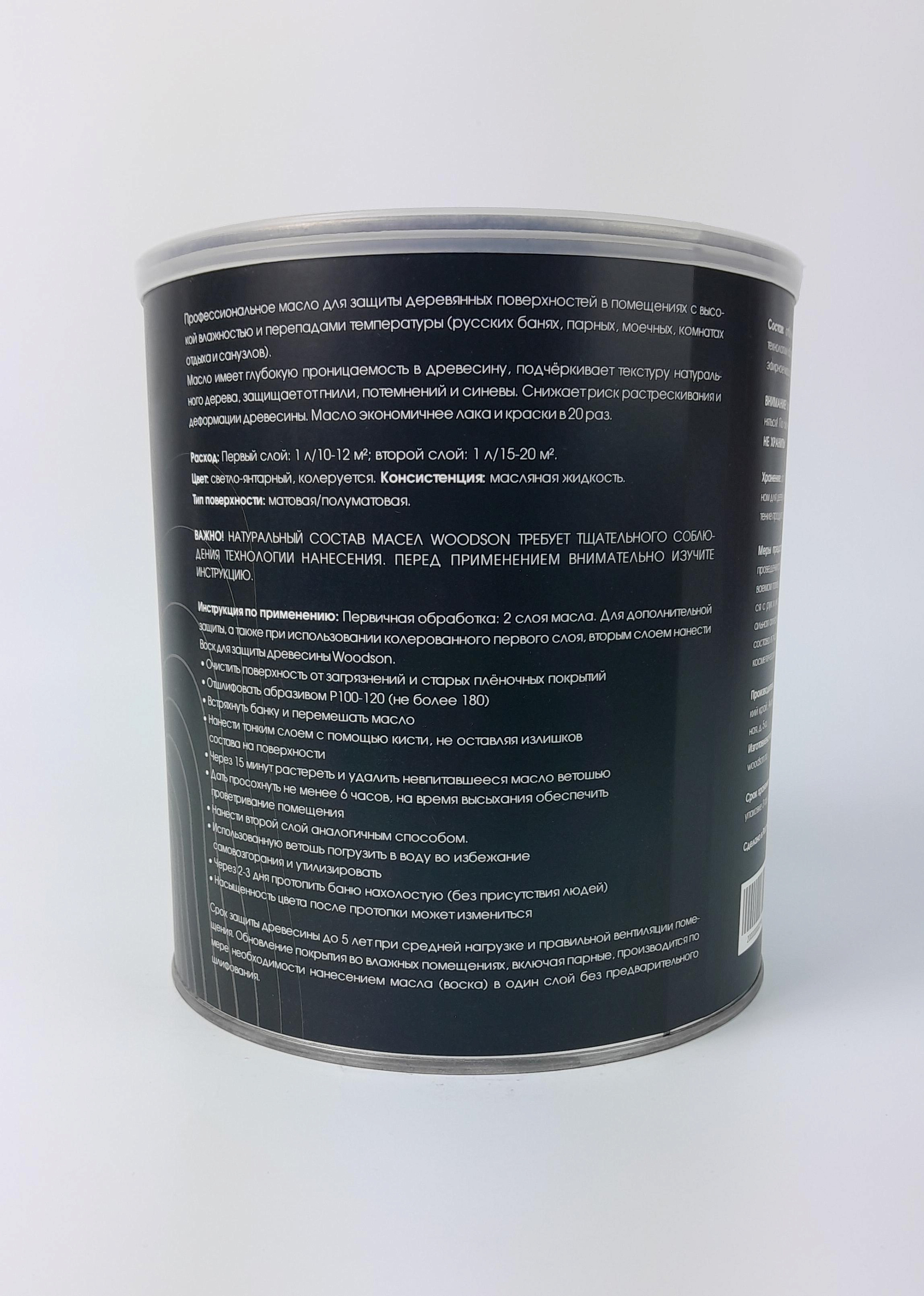 Описание: Масло Woodson разработано по требованиям профессионалов специально для эксплуатации в условиях высокой влажности и температуры — идеально подходит для парных, моечных, саун и других влажных зон. Формула обеспечивает глубокое проникновение в древесину, укрепляя её изнутри, а не создавая поверхностную плёнку. Это позволяет дереву «дышать», сохраняя при этом надёжную защиту. Ключевые преимущества: 1. Быстрое высыхание — первый слой сохнет всего за 6 часов 2. Отличная адгезия — лучше, чем у большинства лаков 3. Лёгкое нанесение — равномерно распределяется, не оставляет подтёков 4. Подчёркивает естественную текстуру дерева 5. Создаёт матовую, тёплую на ощупь поверхность — без липкости и блеска 6. Не желтит древесину — сохраняет её натуральный цвет 7. Экономичный расход: 2,4 л хватает на 26–28 м² (в один слой) Применение: Рекомендуемые поверхности: - Полки, спинки, подголовники в парной - Стены и потолки в моечной - Деревянные полы, лестницы, двери - Мебель в комнате отдыха Инструкция: - Древесина должна быть чистой, сухой и отшлифованной (рекомендуется зерно Р120–180). - Нанесите масло вдоль волокон кистью или мягкой тканью. - Через 6 часов — при необходимости, нанесите второй слой. - Полное отверждение — в течение 24–48 часов при хорошей вентиляции. - Для максимальной защиты в парной рекомендуется 2 слоя. Состав: На основе отбелённого растительного масла, модифицированного по запатентованной технологии Woodson. Без синтетических плёнкообразователей, ПАВ и токсичных растворителей. Масло Woodson (баня) — это выбор тех, кто ценит профессиональное качество, натуральность и долговечность. Защита, которая работает — без лишнего блеска и компромиссов.