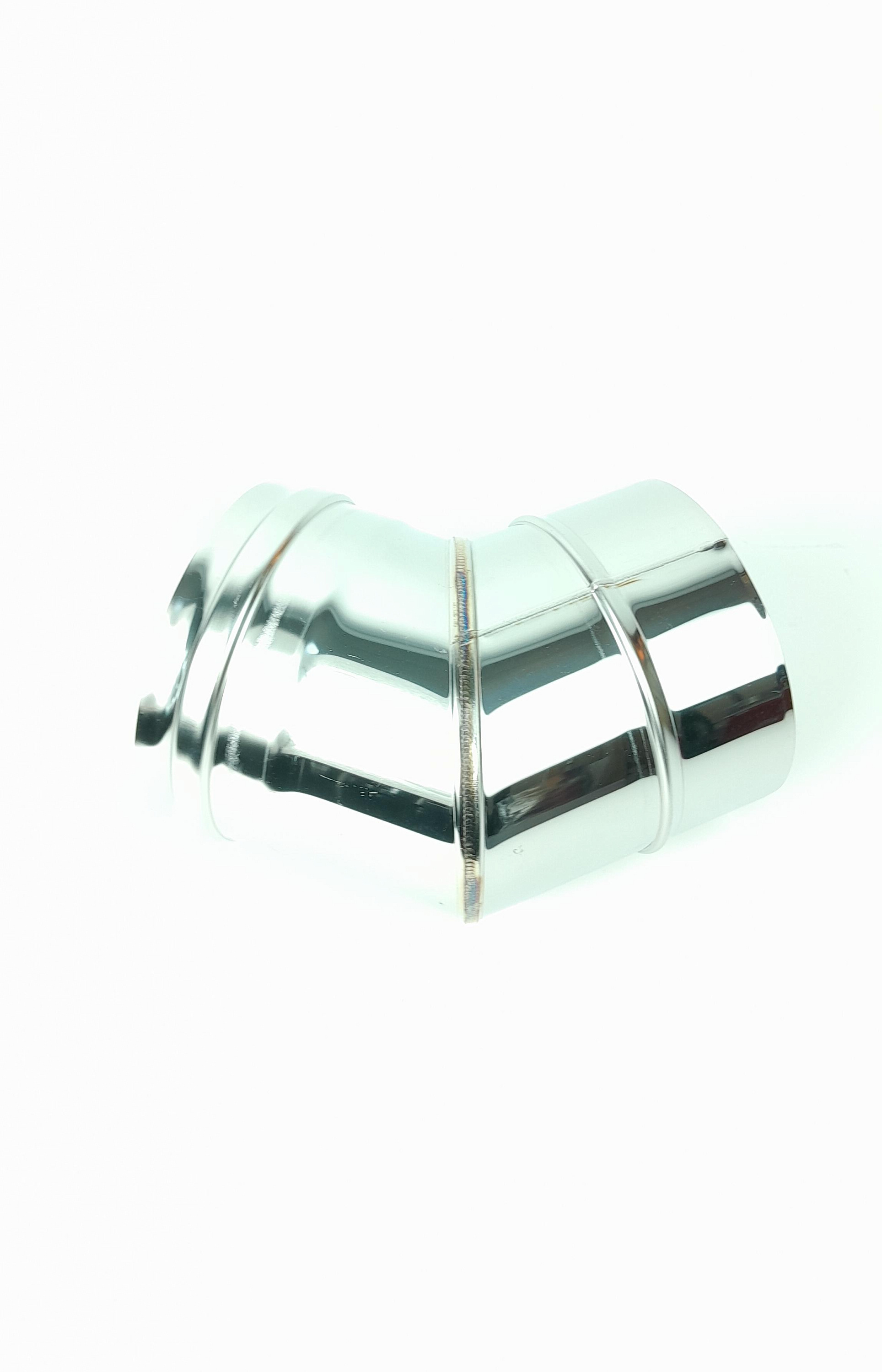 Описание: Отвод 45° ОМ-Р 304-0,8 D130 (2S) Сегментированный дымоходный отвод под углом 45 градусов для неутеплённой (одноконтурной) системы «Моно». Предназначен для плавного изменения направления дымового канала при обходе строительных препятствий с сохранением аэродинамики и тяги. Назначение: 1. Используется в системах дымоудаления от газовых котлов, колонок, пеллетных и низкотемпературных твердотопливных установок. 2. Позволяет гибко проектировать трассу дымохода при наличии балок, вентшахт или других конструкций. 3. Обеспечивает минимальное сопротивление потоку дымовых газов, предотвращая задымление и сажеобразование. Конструктивные особенности: - Изготовлен из трёх цилиндрических сегментов, соединённых шовной сваркой. - Такая конструкция увеличивает радиус поворота до значения, равного диаметру трубы (130 мм), что соответствует требованиям нормативов (СП 60.13330). - При меньшем радиусе поток газов замедляется, что может привести к потере тяги, остановке котла или задымлению помещения. Технические характеристики: Угол отвода: 45° Диаметр (внутренний/внешний): 130 мм Толщина стенки: 0,8 мм Материал: нержавеющая сталь AISI 304 — устойчива к коррозии, конденсату и температурам до 600 °C Габариты (Д × Ш × В): 83 × 130 × 148 мм Вес: 325 г Тип конструкции: одноконтурный (без изоляции) Цвет: серебристый (естественный оттенок нержавеющей стали) Преимущества: - Повышенная коррозионная стойкость благодаря стали AISI 304 (в отличие от AISI 430 — более устойчива к агрессивному конденсату). - Оптимальная аэродинамика — сохраняет стабильную тягу даже при сложной конфигурации дымохода. - Надёжная сварная конструкция — выдерживает термические циклы и вибрации. - Полная совместимость со всеми элементами серии «Стандарт 50» диаметром 130 мм. Рекомендации по монтажу: 1. Не устанавливайте более двух отводов 45° подряд без вертикального участка — это может снизить тягу. 2. Все соединения монтируйте «по дыму» (гребень в раструб) для предотвращения вытекания конденсата. 3. Используйте только во внутренних помещениях или в уже утеплённых шахтах — не предназначен для наружной прокладки без теплоизоляции. Отвод 45° D130 из AISI 304 — это надёжное и долговечное решение для современных дымоходных систем, где важны безопасность, эффективность и стойкость к агрессивной среде конденсата.