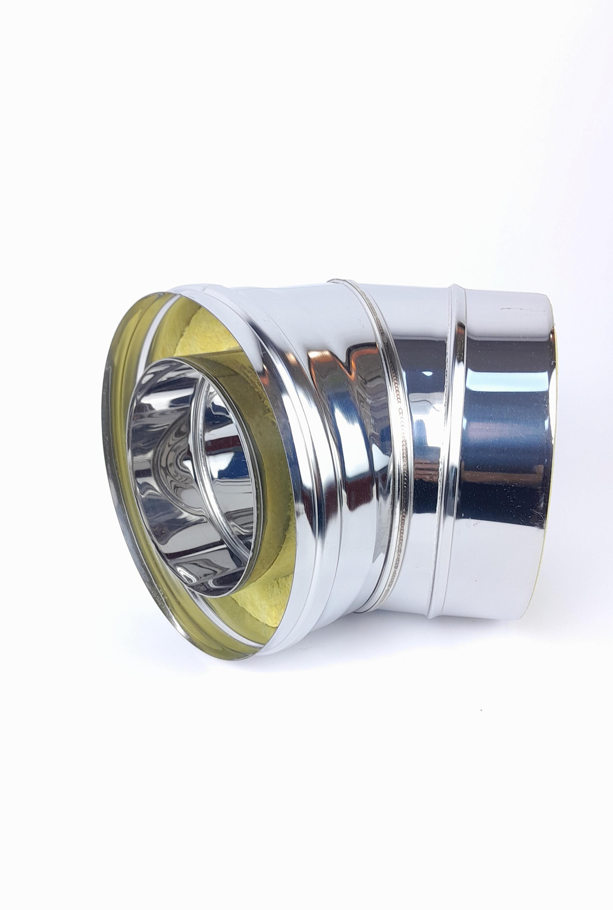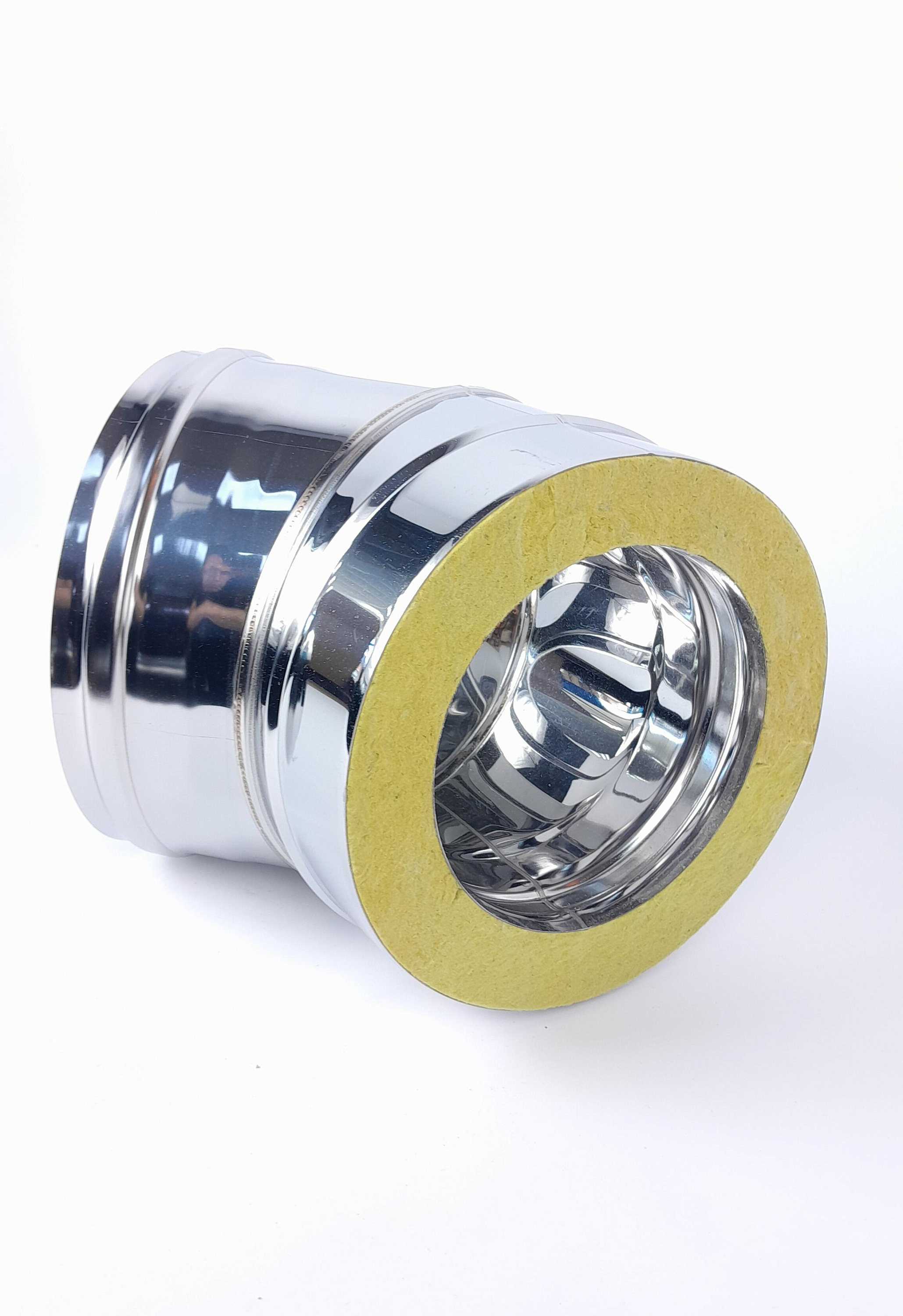 Описание: Отвод Термо 45° ОТ-Р 430-0,5/430 D115/200* (2S) — это элемент утеплённой дымоходной системы «Термо», предназначенный для аккуратного изменения направления дымового канала на 45 градусов без разрыва теплоизоляционного контура. Такой угол часто используется при обходе конструктивных препятствий, монтаже смещённых участков или создании сложных дымоходных конфигураций с минимальными аэродинамическими потерями. Внутренний канал изготовлен из нержавеющей стали AISI 430 толщиной 0,5 мм, устойчивой к коррозии и высоким температурам. Вокруг него расположен слой негорючей базальтовой изоляции толщиной около 42 мм, заключённый в наружную оболочку из той же стали. Такая конструкция обеспечивает: - быстрый прогрев дымохода, - снижение образования конденсата, - повышенную пожарную безопасность при проходе через перекрытия и стены из горючих материалов. Отвод состоит из трёх цилиндрических сегментов, соединённых шовной сваркой, что формирует плавный радиус поворота, соответствующий требованиям нормативов. Это исключает резкие изгибы, сохраняет стабильную тягу и предотвращает нарушения в работе отопительного оборудования. Диаметр 115 мм обеспечивает совместимость с большинством бытовых печей, каминов и твердотопливных котлов. Утеплённое исполнение делает отвод особенно подходящим для наружного монтажа и эксплуатации в холодном климате. Комплектация: — Отвод Термо 45° ОТ-Р 430-0,5/430 D115/200* (2S) — 1 шт. Этот отвод — технически обоснованное решение для создания безопасной, энергоэффективной и долговечной дымоходной системы с учётом всех требований современного строительства.