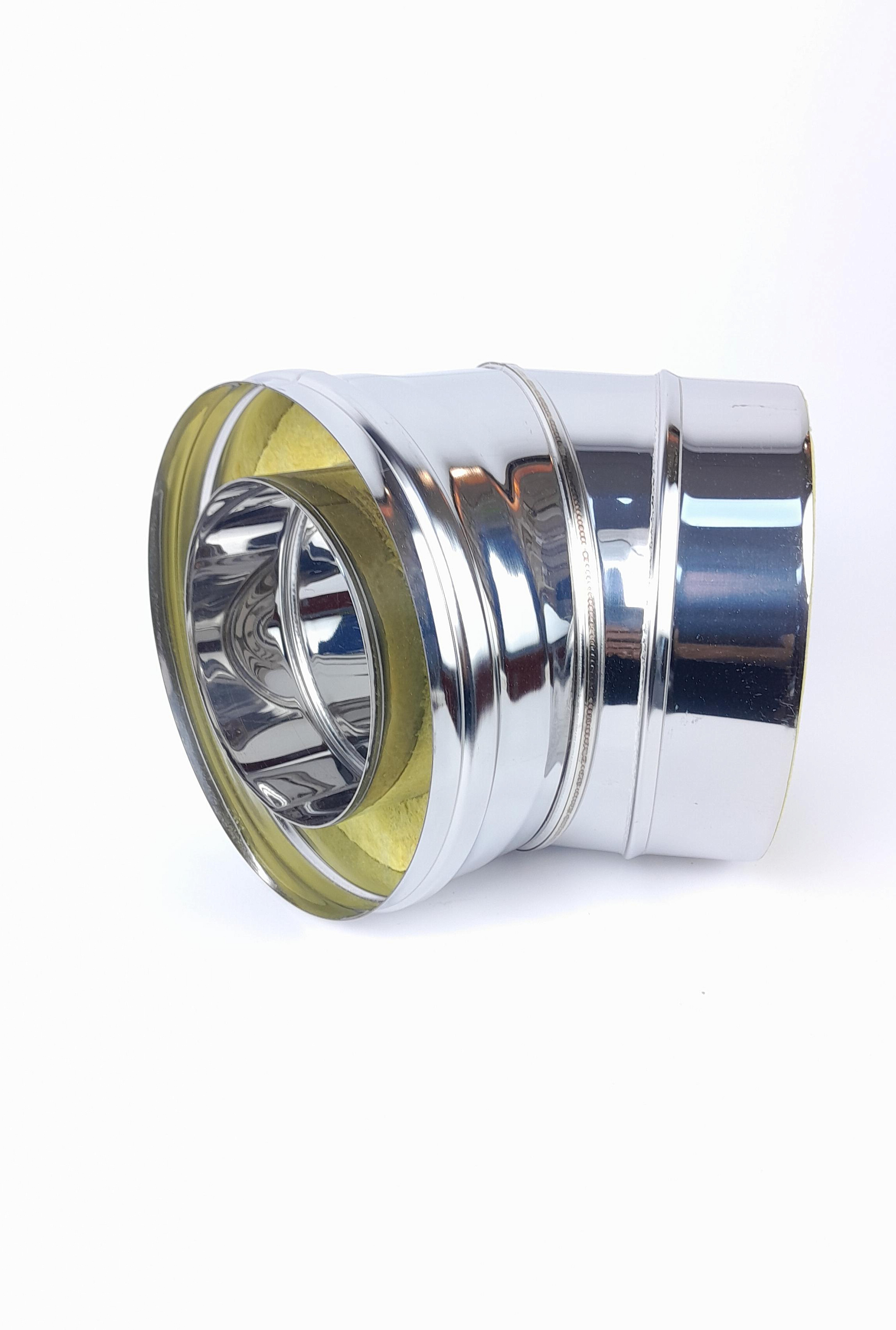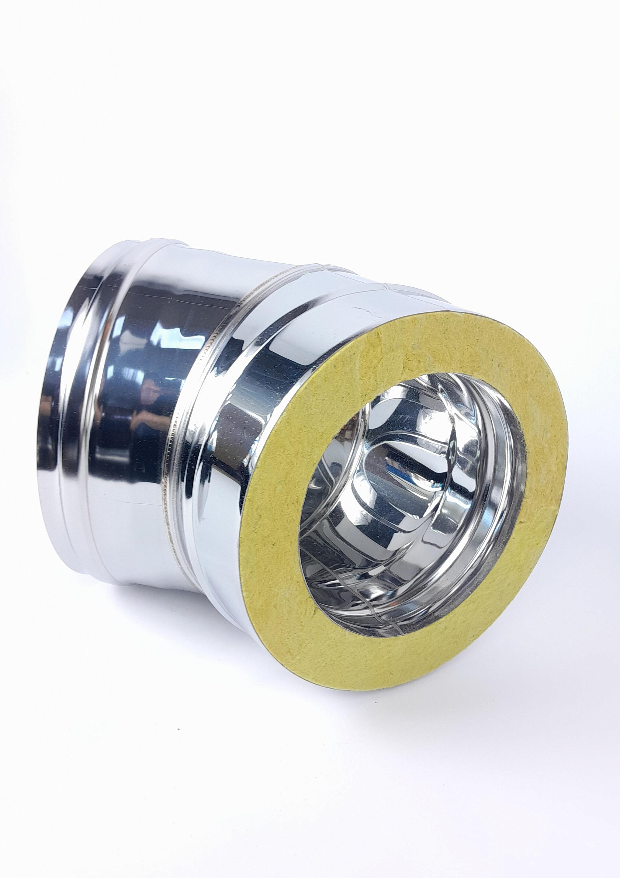 Описание: Отвод Термо 45° ОТ-Р 430-0,8/430 D130/200 (2S) Утеплённый сегментированный отвод под углом 45 градусов для двухконтурной дымоходной системы «Термо». Предназначен для плавного изменения направления дымового канала на наружных или неотапливаемых участках, с сохранением высокой тяги и предотвращением образования конденсата. Назначение и применение: - Используется в утеплённых дымоходах при выводе трубы через стену, чердак или при обходе строительных препятствий. - Подходит для всех типов теплогенераторов: газовых, пеллетных, дровяных печей и каминов. - Обеспечивает стабильную тягу даже в холодное время года благодаря эффективной теплоизоляции. Конструктивные особенности: 1. Двухконтурная конструкция: - Внутренняя труба: Ø130 мм, толщина 0,8 мм, сталь AISI 430 — устойчива к высоким температурам и агрессивному конденсату. - Наружная оболочка: Ø200 мм, толщина 0,5 мм, сталь AISI 430 — защищает от внешних воздействий. 2. Между контурами: 40 мм негорючей базальтовой изоляции — минимизирует теплопотери и предотвращает остывание дымовых газов. 3. Изготовлен из двух цилиндрических сегментов, соединённых шовной сваркой, что обеспечивает плавный радиус поворота, соответствующий нормативам. 4. Угол 45° позволяет гибко проектировать дымоход без резких изломов, снижающих тягу. Технические характеристики: Угол отвода: 45° Внутренний диаметр: 130 мм Наружный диаметр: 200 мм Толщина изоляции: 40 мм Толщина внутренней трубы: 0,8 мм Толщина наружной оболочки: 0,5 мм Материал: нержавеющая сталь AISI 430 (внутренняя и наружная) Габариты (Д × Ш × В): 54 × 200 × 178 мм Вес: 1 180 г Тип: утеплённая система «Термо» Преимущества: - Полная защита от конденсата — за счёт эффективной теплоизоляции. - Высокая пожаробезопасность — базальтовая вата не горит и выдерживает температуру до 1000 °C. - Совместимость со всеми элементами системы «Термо» D130/200. - Долговечность — нержавеющая сталь AISI 430 устойчива к коррозии как изнутри, так и снаружи. Рекомендации по монтажу: 1. Устанавливайте отвод только в системах «Термо» — не совместим с неутеплёнными трубами «Моно». 2. Соблюдайте направление «по дыму»: внутренняя труба монтируется гребнем в раструб. 3. При наружной прокладке рекомендуется использовать дождевой оголовок для защиты от осадков. Отвод Термо 45° D130/200 — это надёжное и безопасное решение для любых климатических условий, обеспечивающее эффективную работу дымохода круглый год.