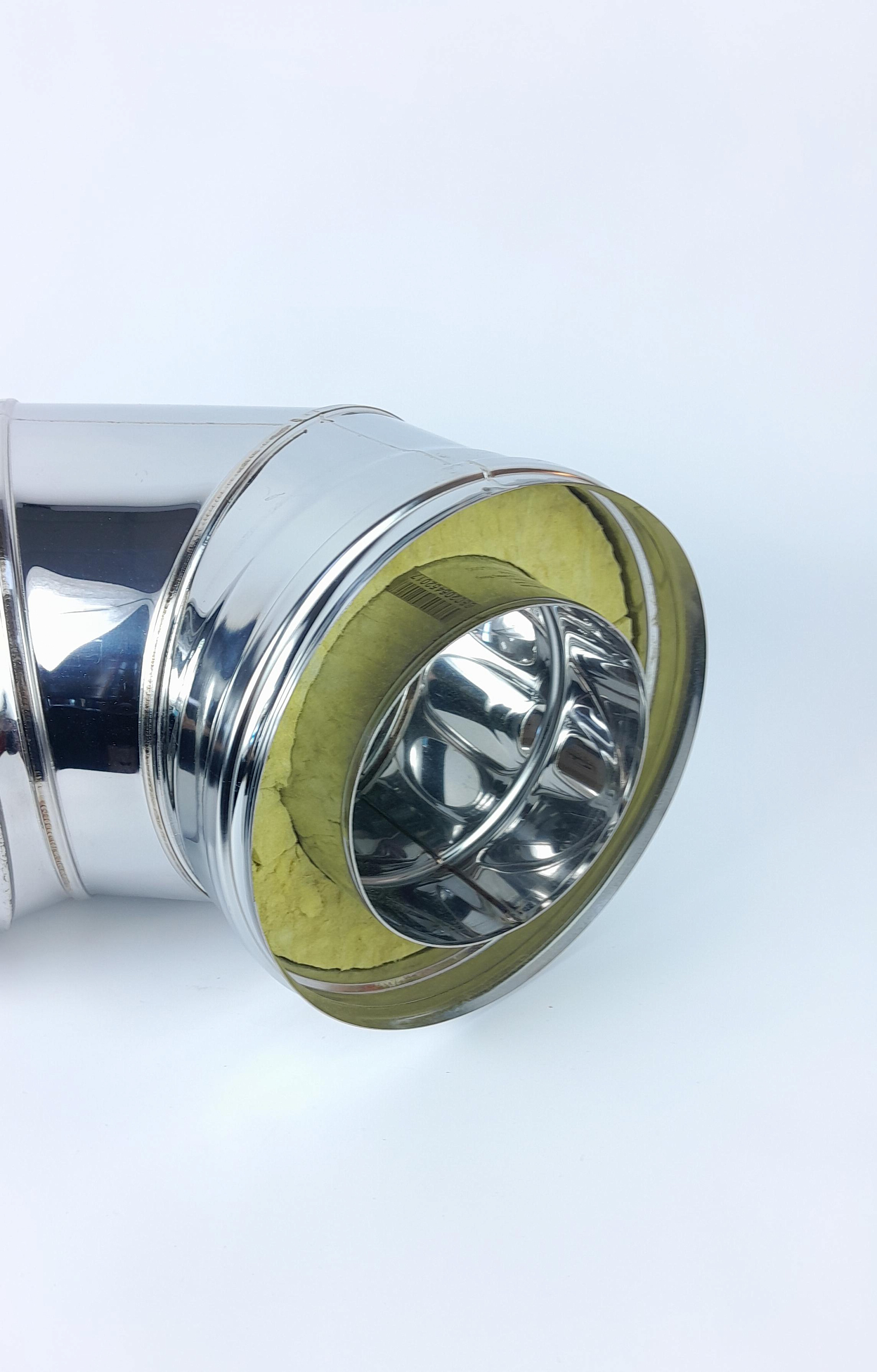 Описание: Отвод Термо 87° ОТ-Р 430-0,8/430 D115/200* (3S) — это усиленный элемент утеплённой дымоходной системы «Термо», предназначенный для изменения направления дымового канала на 87 градусов с сохранением полной теплоизоляции по всему контуру. Отличительная особенность этой модели — утолщённая внутренняя труба толщиной 0,8 мм, что обеспечивает повышенную прочность и долговечность при интенсивной эксплуатации. Конструкция отвода состоит из нескольких сварных цилиндрических сегментов (технология 3S), что позволяет достичь оптимального радиуса поворота, соответствующего или превышающего диаметр дымового канала. Это исключает резкие изгибы, минимизирует аэродинамическое сопротивление и предотвращает нарушение тяги, задымление или остановку теплогенератора. Внутренний канал из нержавеющей стали AISI 430 устойчив к высоким температурам (до 450 °C) и агрессивным продуктам сгорания. Наружная оболочка того же материала охватывает негорючий базальтовый утеплитель толщиной около 42 мм, обеспечивающий: - быстрый выход дымохода на рабочий режим, - значительное снижение конденсатообразования, - повышенную пожаробезопасность при проходе через деревянные конструкции. Диаметр 115 мм гарантирует совместимость с большинством печей, каминов и котлов малой и средней мощности. Утеплённое исполнение делает отвод особенно подходящим для наружной установки, монтажа в неотапливаемых помещениях и эксплуатации в холодном климате. Комплектация: — Отвод Термо 87° ОТ-Р 430-0,8/430 D115/200* (3S) — 1 шт. Этот отвод — выбор для тех, кто выбирает усиленные, энергоэффективные и безопасные решения для долговечной дымоходной системы.