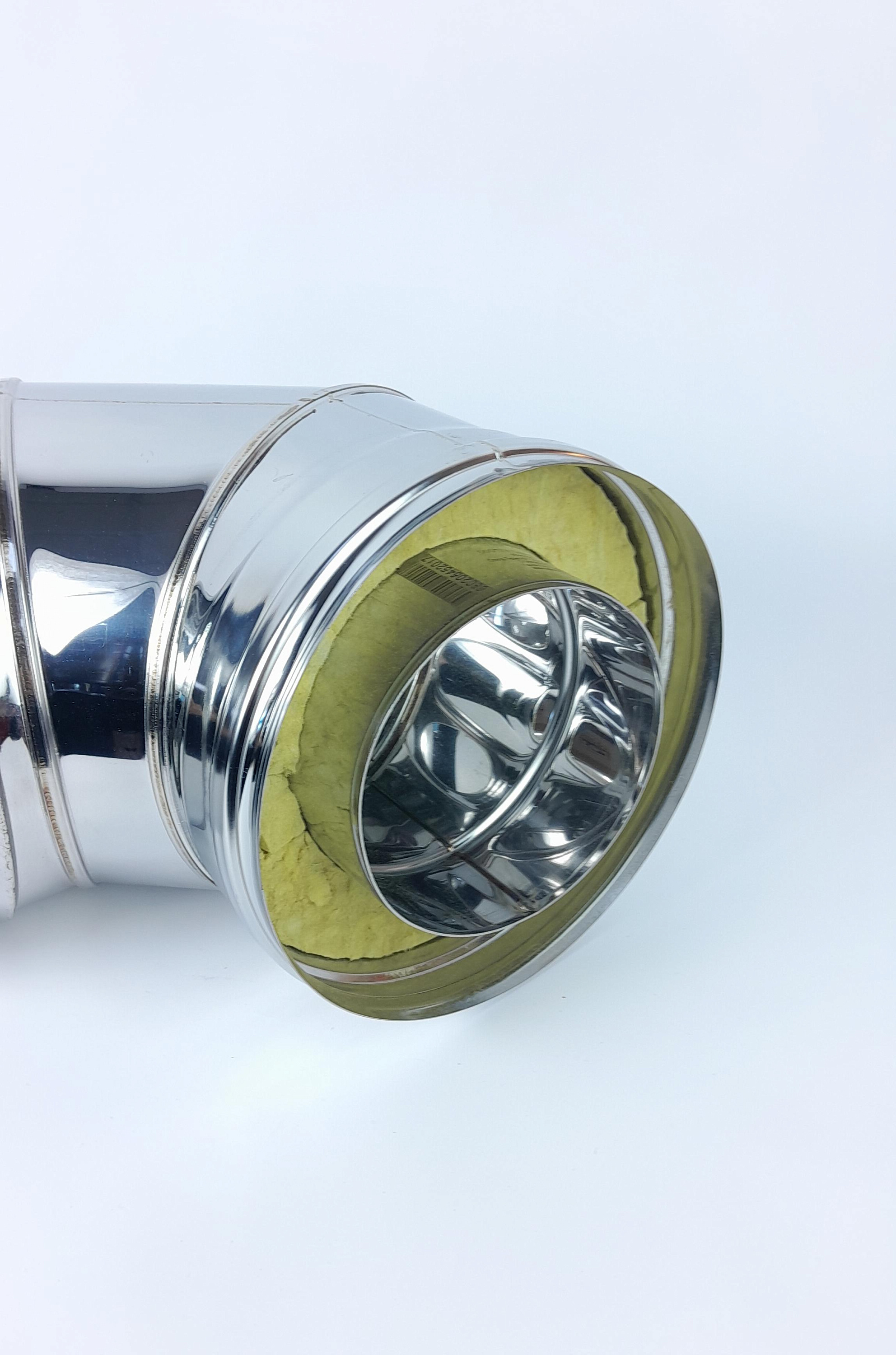 Описание: Отвод Термо 87° ОТ-Р 430-0,8/430 D130/200 (3S) Усиленный утеплённый отвод под углом 87 градусов для двухконтурной дымоходной системы «Термо». Предназначен для плавного и безопасного перехода от горизонтального участка к вертикальному в утеплённом дымоходе — с максимальной тягой и минимальными теплопотерями. Назначение и применение: - Используется при подключении дровяных печей, каминов, пеллетных и газовых котлов к утеплённому дымоходу. - Обеспечивает оптимизированный угол поворота (87°), исключающий прямые углы и резкие изгибы в потоке дымовых газов. - Применяется на наружных, чердачных или неотапливаемых участках, где критически важна теплоизоляция для предотвращения конденсата, потери тяги и обмерзания. Конструктивные особенности: 1. Двухконтурная конструкция: - Внутренняя труба: Ø130 мм, толщина 0,8 мм, сталь AISI 430 — повышенная прочность и устойчивость к агрессивному конденсату и высоким температурам. - Наружная оболочка: Ø200 мм, толщина 0,5 мм, сталь AISI 430 — полная коррозионная стойкость снаружи. 2. Между контурами: 35 мм (условно, при D130/200) негорючей базальтовой изоляции — эффективно удерживает тепло и предотвращает остывание дымовых газов. 3. Изготовлен из трёх цилиндрических сегментов, соединённых шовной сваркой, что создаёт плавный, аэродинамичный изгиб с радиусом, соответствующим диаметру трубы. 4. Угол 87° разработан в соответствии с требованиями СП 60.13330 и снижает сопротивление потоку по сравнению с классическими 90° коленами. 5. Прямой угол создаёт «мёртвую зону», где дымовые газы замедляются, сажа оседает, а тяга падает. Угол 87° обеспечивает гладкий обтекаемый поворот, что критично для стабильной работы котла или печи. Технические характеристики: Угол отвода: 87° Внутренний диаметр: 130 мм Наружный диаметр: 200 мм Толщина внутренней трубы: 0,8 мм (AISI 430) Толщина наружной оболочки: 0,5 мм (AISI 430) Толщина изоляции: ~35 мм (расчётная, при D130/200) Габариты (Д × Ш × В): 300 × 200 × 300 мм Вес: 1 820 г Тип: утеплённая система «Термо» Преимущества: - Повышенная прочность за счёт утолщённой внутренней трубы (0,8 мм) — идеален для интенсивной эксплуатации. - Максимальная тяга благодаря аэродинамическому углу 87°. - Полная коррозионная защита — нержавеющая сталь как внутри, так и снаружи. - Эффективная теплоизоляция — исключает конденсат даже при –30°C. - Пожаробезопасность — базальтовая вата не горит и выдерживает до 1000 °C. Рекомендации по монтажу: 1. Используйте только в системах «Термо» — не совместим с неутеплёнными трубами «Моно». 2. Соблюдайте направление «по дыму»: гребень внутренней трубы вставляется в раструб предыдущего элемента. 3. При выводе на улицу завершите дымоход зонтом или дефлектором для защиты от дождя и ветра. Отвод Термо 87° D130/200 с толщиной внутренней стенки 0,8 мм — это выбор для тех, кто строит надёжный, долговечный и высокоэффективный дымоход для печи или котла любой мощности.
