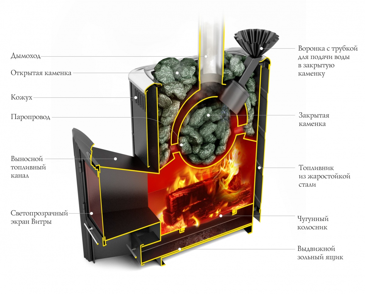 Описание: Перед вами — одна из самых популярных и технологичных банных печей от TMF: Гейзер 2014 Inox Витра ЗК ТО Терракота. Это не просто печь — это инструмент для создания идеального микроклимата в бане по вашему вкусу: от сухого жара финской сауны до мягкого, уютного пара русской бани. Благодаря уникальной системе двойного парообразования, вы можете легко переключаться между режимами и наслаждаться разными банями в одном помещении. Ключевые особенности: Длина: 840 мм Ширина: 510 мм Высота: 910 мм Вес: 65 500 г (65,5 кг) Материал: Жаростойкая хромированная сталь Inox (высоколегированная нержавеющая сталь) Тип топки: Дровяная Объём парилки: до 20 м³ С теплообменником: Да (встроенный) С закрытой каменкой: Да Две каменки — два вида пара: 1. Закрытая каменка (ЗК) — обеспечивает быстрый прогрев воздуха и создаёт лёгкий, сухой пар (идеально для финской сауны). 2. Открытая каменка — добавляет объёмности и аромат тепла, усиливает эффект «парового водопада». Система подачи воды через воронку: - Вода поступает напрямую в центр закрытой каменки, где камни разогреты до 600 °C, мгновенно превращаясь в тончайший пар-аэрозоль. - Пар проходит через два паропровода в открытую каменку, где многократно отражается от раскалённых камней, становясь сухим, мягким и лёгким. - Специальный клапан перекрывает воронку после подачи — безопасно и эффективно. Умная конструкция: - Округлая форма внутренней каменки предотвращает скопление сажи - Оптимальное расположение паропроводов исключает засорение крошками камней - Выдвижной золоуловитель-совок — золу можно удалять без остановки горения, просто наклонив ящик Кожух-конвектор: 1) Ускоряет нагрев воздуха за счёт мощного конвекционного потока 2) Экранирует жёсткое ИК-излучение — тепло становится мягким и комфортным 3) Защищает от случайных прикосновений к горячим стенкам Жаростойкая сталь Inox: - Выдерживает температуры свыше 750 °C (в отличие от «чёрной» стали — до 450 °C) - Не склонна к окалине, долговечна, устойчива к коррозии - Быстрее нагревается и дольше сохраняет тепло Теплообменник (ТО): 1. Встроен в топку — нагрев воды происходит максимально быстро 2. Подключается к выносному баку (до 150 л) 3. Возможность переустановки на любую сторону — разъёмы с обеих боков, вторая сторона закрывается заглушками Большое жаропрочное стекло Витра: - Диагональ: 42 см (17") - Стекло Schott Robax® — выдерживает до 750 °C, не трескается от перепадов - Щель для пиролизной самоочистки — минимум сажи на экране - Позволяет наблюдать за игрой пламени из комнаты отдыха — создаёт уют и атмосферу настоящей бани Дизайн: - Цвет кожуха: Терракота — тёплый, натуральный оттенок, гармонирующий с деревянным интерьером - Современный, строгий стиль — сочетание функциональности и эстетики Технические преимущества: - Прогрев парилки до 100 °C за 60 минут (финская сауна) - Режим мягкой русской бани: 60–70 °C, влажность до 80% - Трёхлетняя гарантия на целостность металла и сварных швов - Подходит для парильных объёмом до 20 м³ - Удобство обслуживания и эксплуатации Идеально подходит для: - Домашних бань и саун - SPA-зон и загородных домов - Любителей как сухого, так и влажного пара TMF Гейзер 2014 Inox Витра ЗК ТО Терракота — это инженерное совершенство, надёжность и банное искусство в одной печи. Создайте свой идеальный пар — сухой или мягкий, горячий или умиротворяющий. С «Гейзером» всё возможно.