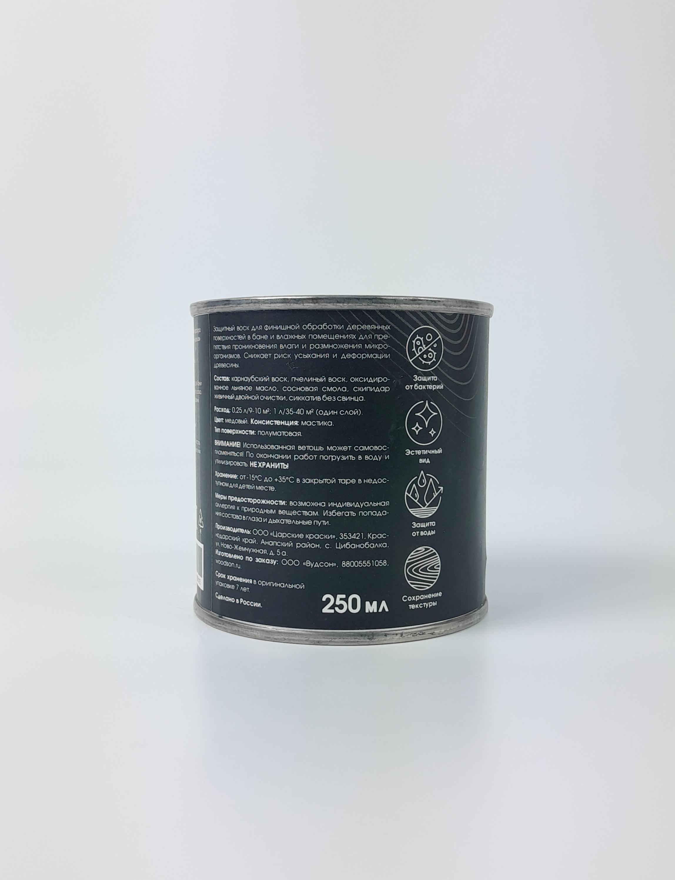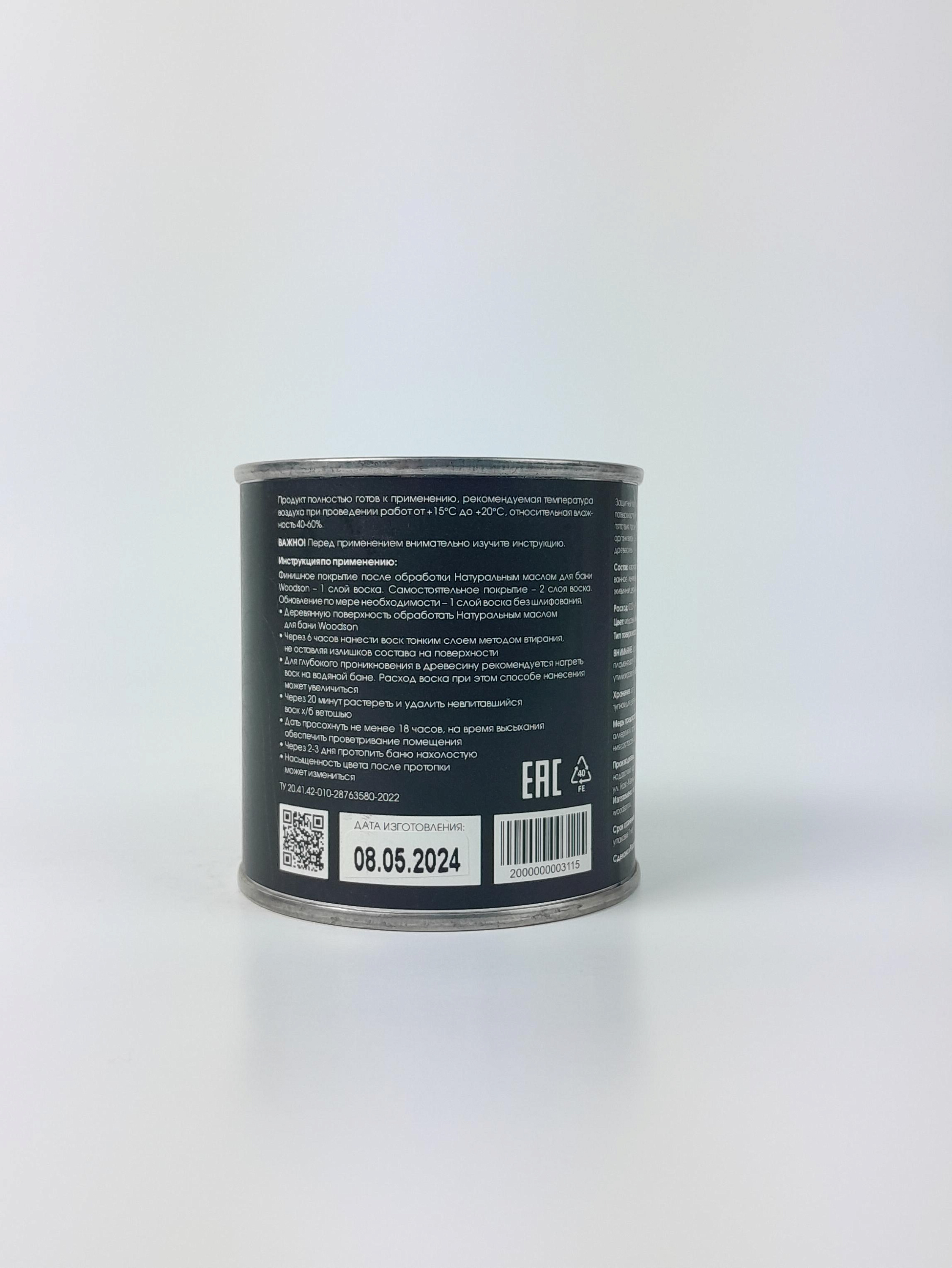 Описание: Воск Woodson — это износостойкое финишное покрытие, предназначенное для нанесения поверх масляной пропитки (например, масла Woodson для бани). Он создаёт тонкую, но прочную полимеризированную плёнку, которая: - защищает дерево от усыхания, растрескивания и деформации, - предотвращает появление грибка, бактерий и почернения, - усиливает водоотталкивающие свойства без нарушения «дышащей» способности древесины. Ключевые преимущества: 1. Сохраняет естественную текстуру и цвет дерева 2. Формирует износостойкое, но невидимое покрытие 3. Безопасен для использования в бане, сауне, моечной 4. Устойчив к высокой влажности и перепадам температур 5. Легко наносится и обновляется — не требует шлифовки при повторной обработке Применение: - Наносите только после полного высыхания масляного слоя (минимум 24 часа). - Используйте мягкую ткань или кисть — нанесите тонким слоем вдоль волокон. - Через 15–20 минут отполируйте сухой хлопковой тканью до лёгкого блеска. - Полное отверждение — в течение 24 часов. - Расход: 0,25 л достаточно для обработки 3–5 м² (в зависимости от породы дерева и степени износа). Состав: На основе натуральных восков (включая карнаубский и/или пчелиный) и модифицированных растительных масел. Без синтетических смол, ПАВ и токсичных растворителей. Воск Woodson — финальный штрих в защите дерева. Для тех, кто хочет, чтобы баня оставалась не только красивой, но и долговечной.