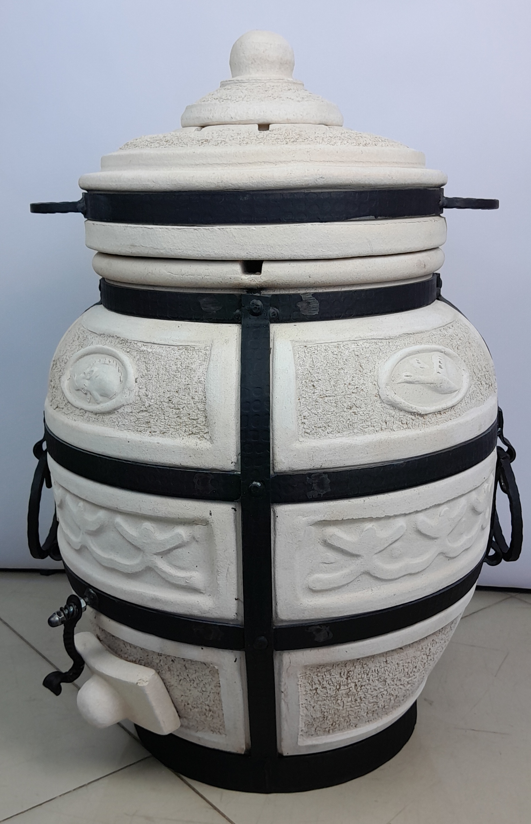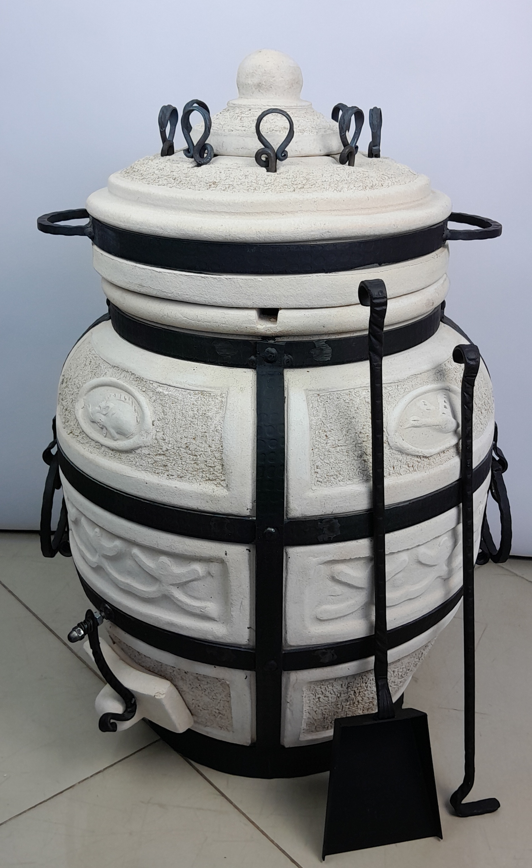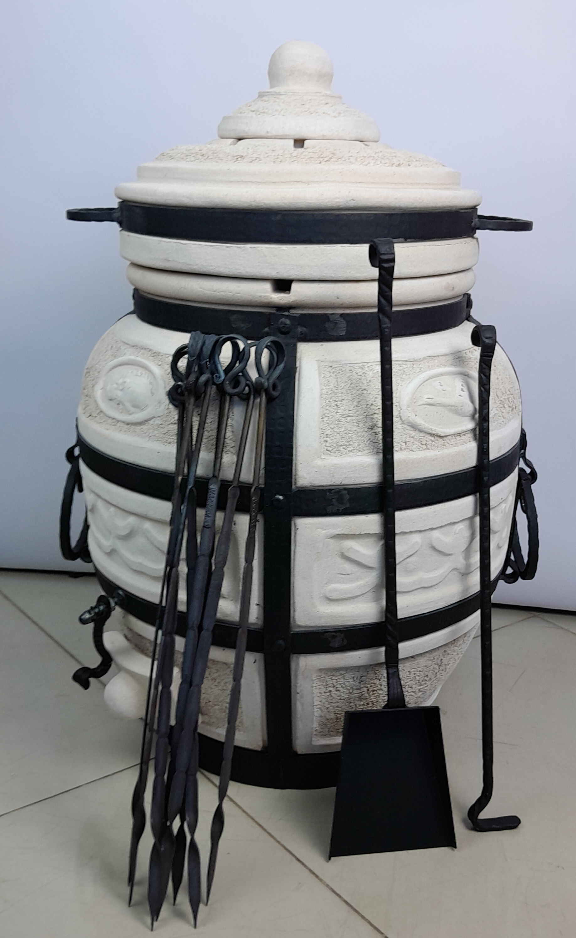 Описание: Тандыр Амфора Охотник — ваш верный спутник на природе и даче. Компактный, прочный и невероятно эффективный — тандыр Охотник создан для тех, кто ценит вкус настоящего огненного приготовления. Идеально подходит для загородного дома, дачи или поездок на пикник: благодаря весу всего 87 кг и удобным кованым ручкам, его легко транспортировать и устанавливать в любом месте. Изготовленный из высококачественной шамотной глины с толщиной стенок 5 см, тандыр быстро нагревается и долго сохраняет тепло, обеспечивая равномерное приготовление без пересушивания. Стальной каркас придаёт конструкции надёжность и устойчивость, а компактные размеры (560×560×740 мм) экономят пространство. Что можно готовить? - Сочный шашлык на 8 шампурах (входят в комплект) - Рыбу, птицу, овощи и мясо — вертикально или на шампурах - Ароматные лепёшки - Блюда, недоступные мангалу: хлеб, плов, бешбармак Тепло внутри тандыра распределяется равномерно — продукты обжариваются со всех сторон, пропитываясь дымком и сохраняя соки. Достаточно разжечь огонь, насадить маринованные ингредиенты на шампуры, опустить их внутрь и закрыть крышку — готовка проходит без участия. Комплектация: - 8 шампуров (рабочая часть — 38,5 см, общая длина — 50 см) - Кочерга — для регулировки огня - Совок — для удаления золы после готовки - Тандыр Амфора Охотник Краткая инструкция: 1. Установите тандыр на ровную, огнеупорную поверхность. 2. Разожгите дрова или уголь внутри — прогрейте 40–60 минут до равномерного накала стенок. 3. Насадите продукты на шампуры, поместите внутрь. Закройте — готовьте 30–60 мин. 4. После использования дайте остыть естественно. Не заливайте водой! 5. Очистите совком и кочергой только после полного остывания. Тандыр Охотник — это не просто печь, а кулинарная свобода. Готовьте больше, вкуснее и проще — возвращайтесь к истокам с настоящим восточным жаром!