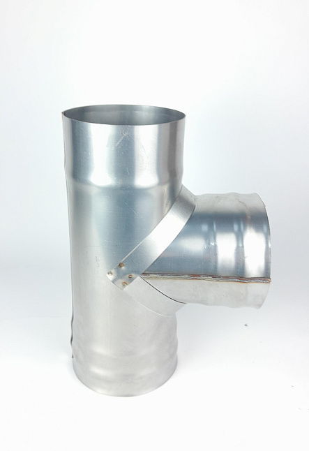 Описание: Тройник 90° Ø120 — это базовый элемент одностенной дымоходной системы, предназначенный для: - подключения печи, камина или котла с патрубком 120 мм к вертикальному дымоходу, - организации горизонтального участка от теплогенератора до основной трубы, - обслуживания дымохода: нижний отвод можно использовать как ревизию — установить заглушку или конденсатосборник. Конструкция с прямым углом позволяет компактно разместить систему даже в условиях ограниченного пространства. Материал и надёжность Изготовлен из нержавеющей стали AISI 430 толщиной 0,5 мм, что обеспечивает: - устойчивость к коррозии и агрессивному конденсату, - прочность при температурах до 450–600 °C, - долгий срок службы при частых растопках. Преимущества: 1. Совместимость с оборудованием, имеющим патрубок Ø120 мм 2. Функция ревизии — лёгкий доступ для чистки и обслуживания 3. Простой монтаж — стандартные размеры, плотная посадка 4. Надёжная герметичность при правильной сборке «по конденсату» 5. Эстетика и практичность — матовая поверхность, устойчивая к внешним воздействиям
