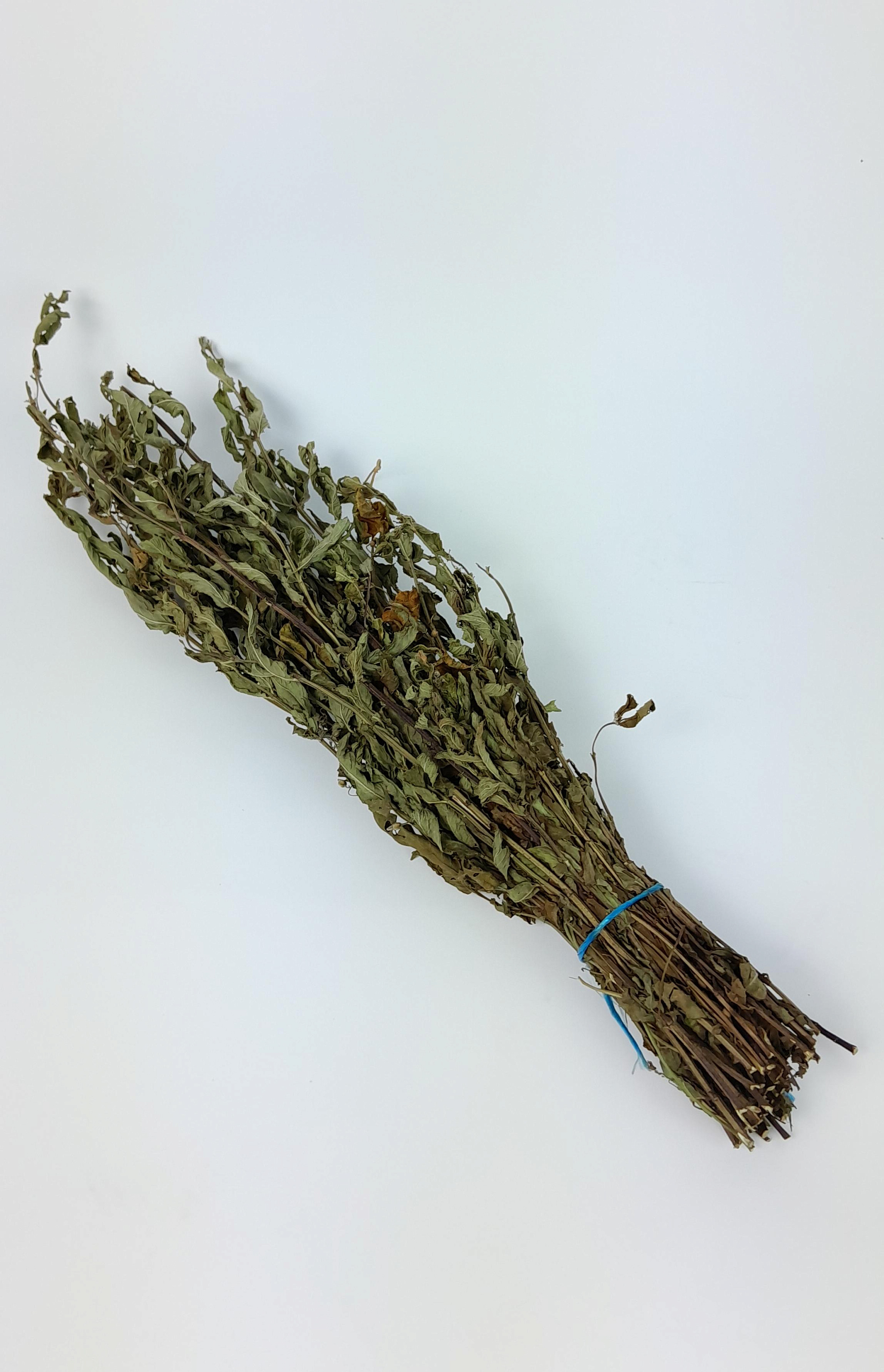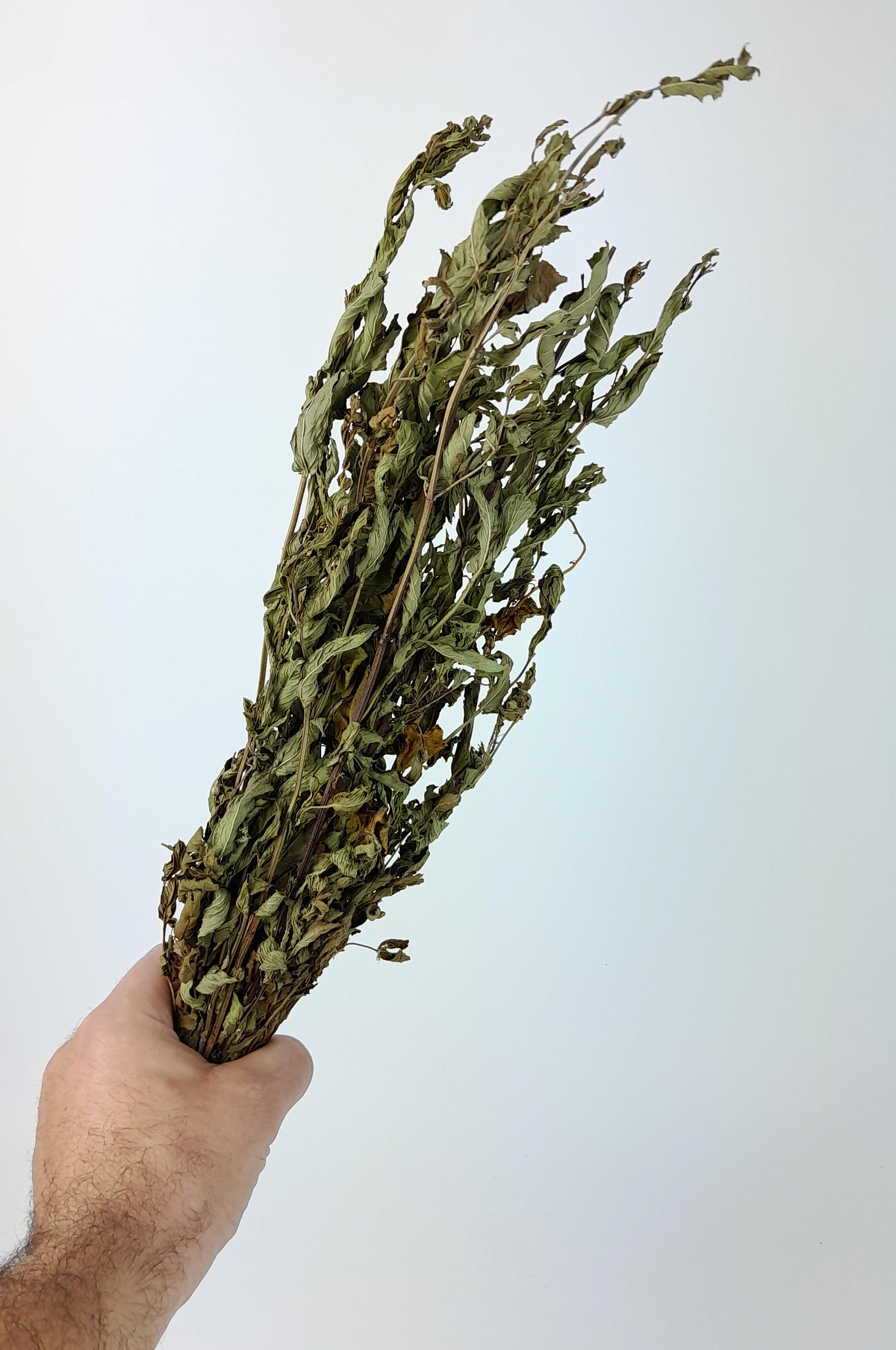 Описание: Натуральный травяной пучок из сухой мяты ментоловой — незаменимый аксессуар для тех, кто ценит свежесть и ясность в парной. При запаривании или окуривании мята наполняет баню прохладным, бодрящим ароматом с выраженной ментоловой нотой. Этот аромат мгновенно облегчает дыхание, снимает ощущение духоты и создаёт ощущение лёгкости даже в самой жаркой парной.