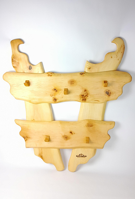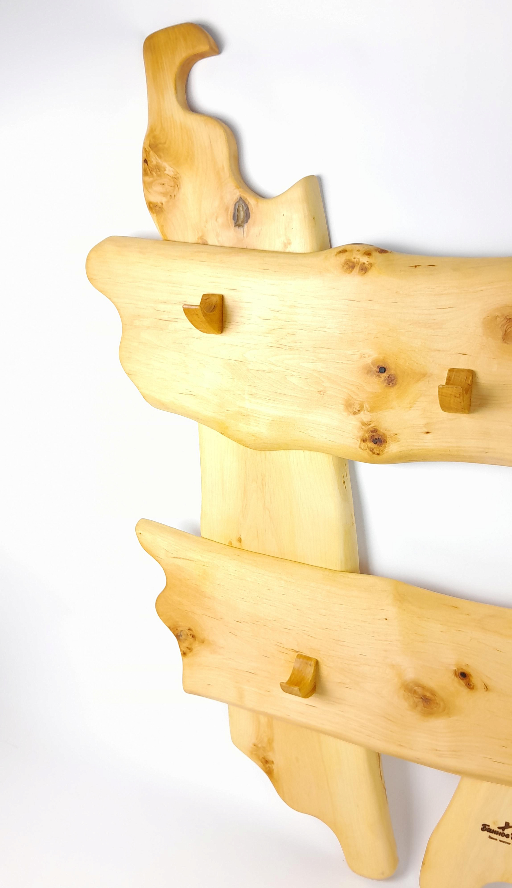 Описание: Большая вешалка из ольхи без перекладины — практичное решение для хранения одежды, полотенец и халатов в предбаннике. Компактная конструкция с пятью крючками экономит место, но выдерживает нагрузку даже от мокрых принадлежностей. Преимущества: — Компактная — занимает меньше места, чем модель с перекладиной — 5 крючков выдерживают вес мокрых полотенец и халатов — Ольха не темнеет во влажной среде и не выделяет смол — Прочное крепление — не расшатывается при ежедневном использовании — Простой монтаж на стену (отверстия под саморезы предусмотрены) Подойдет как для сухой одежды и банных принадлежностей( одежда и сумки), так и для мокрого текстиля ( халаты и полотенца). Установите вешалку в предбаннике — и разместите всё необходимое без лишних деталей.