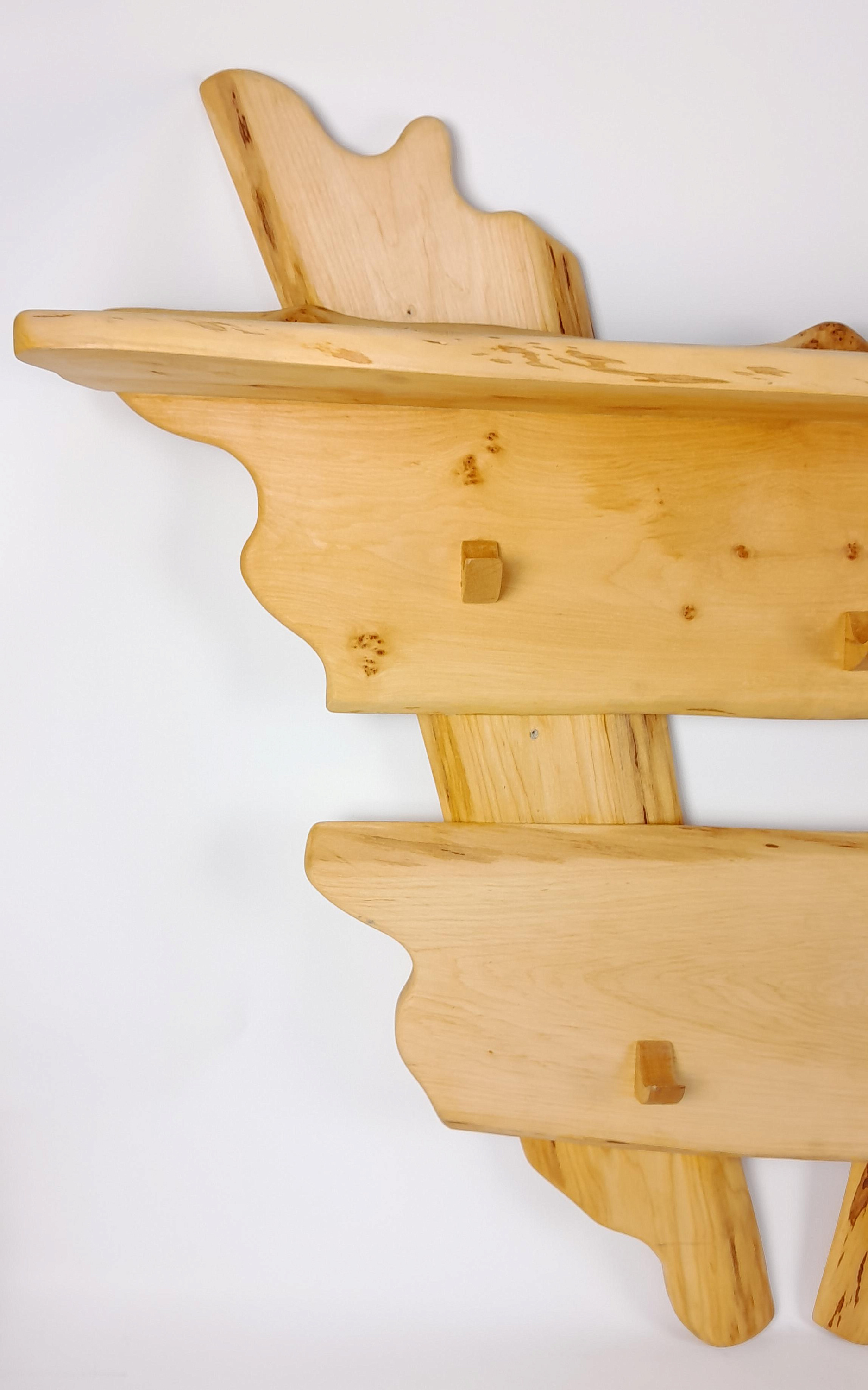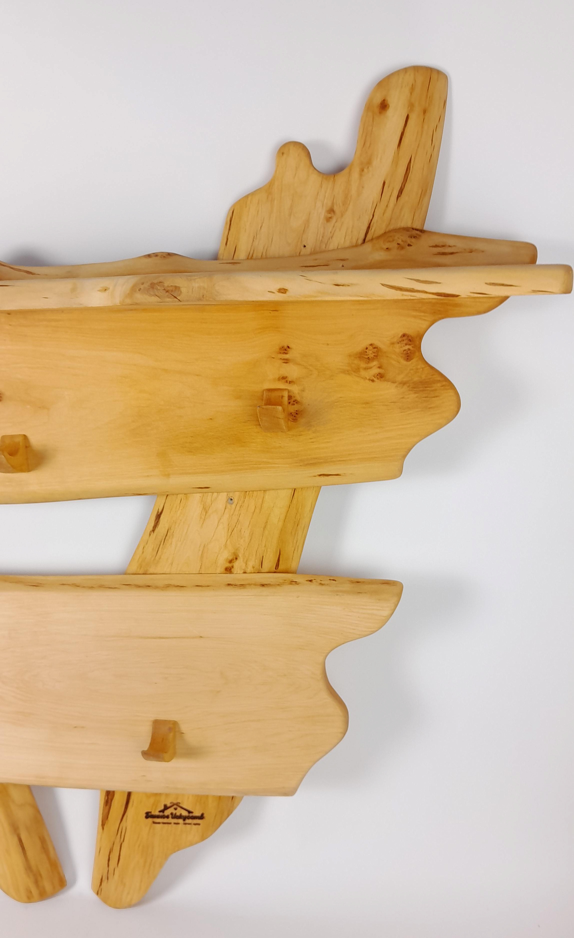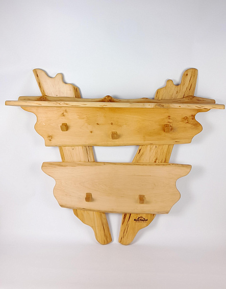 Описание: Большая деревянная вешалка из ольхи решает две задачи одновременно: хранение сухой одежды и предметов и быстрая сушка мокрого текстиля. Пять прочных крючков удерживают одежду, сумки и головные уборы, а горизонтальная полка позволяет положить маленькие полотенца и иные предметы для хранения. Влага испаряется равномерно — вещи сохнут за 1–2 часа без появления затхлого запаха. Конструкция: 5 крючков + горизонтальная полка Преимущества: — Универсальность: крючки — для сухой одежды и сумок, мокрых полотенец и купальников, полка для хранения предметов и полотенец. — Быстрая сушка: обеспечивает циркуляцию воздуха вокруг мокрого текстиля — Ольха не темнеет во влажной среде и не выделяет смол при нагреве воздуха в предбаннике — Прочная конструкция — выдерживает нагрузку до 15 кг без деформации — Лёгкий монтаж — крепится к деревянной стене на саморезы Где установить: Рекомендуется монтировать в предбаннике или комнате отдыха на высоте 160–170 см от пола. Не устанавливайте в непосредственной близости от печи — оптимальное расстояние 2–3 метра. Закажите вешалку из ольхи — и забудьте о мокрых полотенцах на скамейках и одежде в углах.