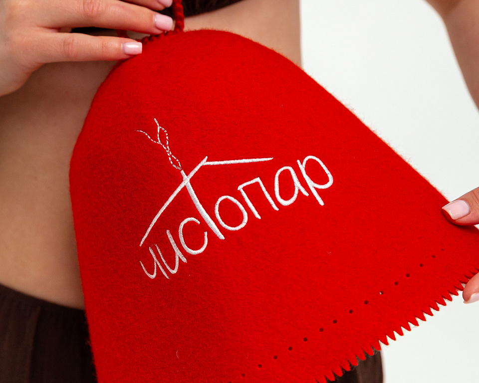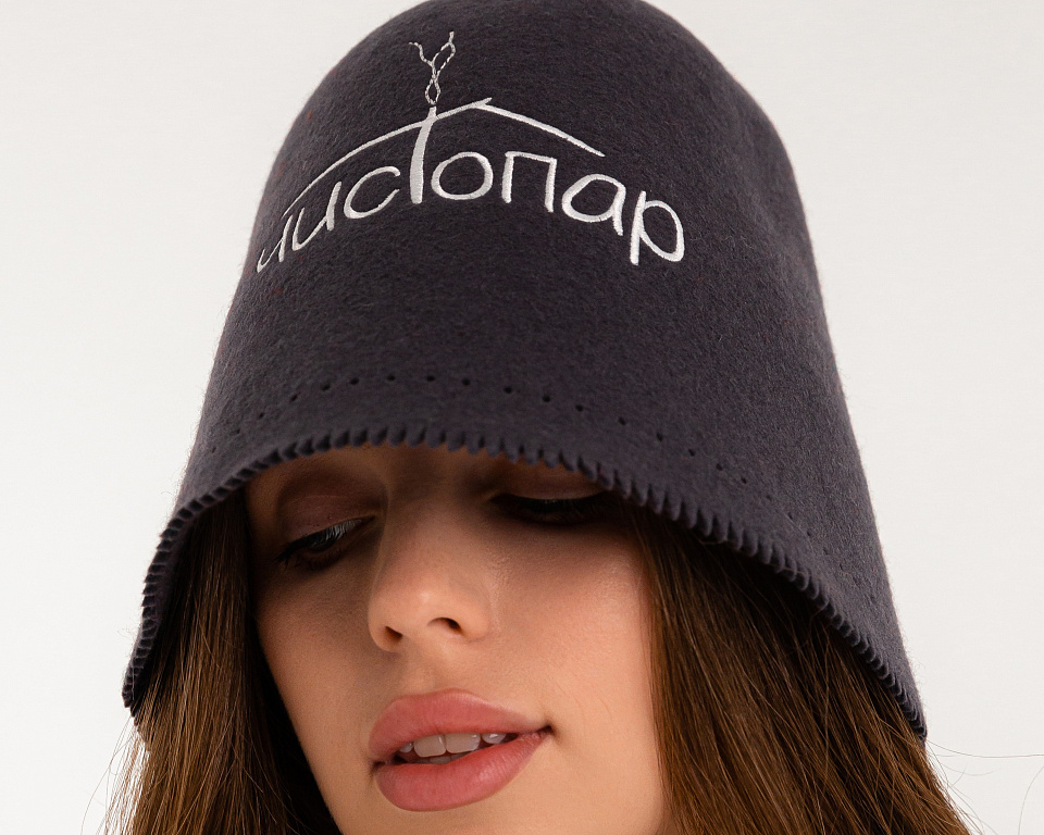 Фетр — самый распространённый материал для банных шапок. Он приятный на ощупь, хорошо держит форму и выглядит аккуратно.