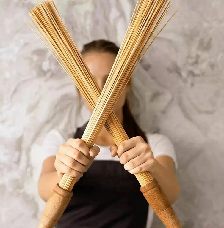 Благодаря жёсткой структуре бамбука, веник может использоваться для точечного воздействия, снятия мышечного напряжения, стимуляции кожи и микроциркуляции.