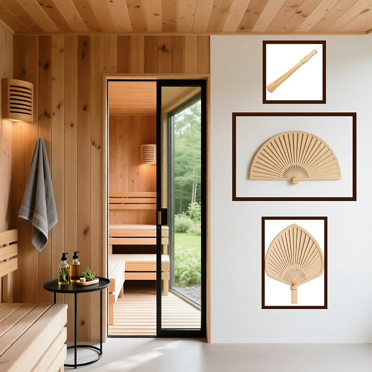 Инструменты комфортного парения — опахало, веер и бамбуковый веник — дополняют классические банные практики, делая процесс более удобным, чистым и адаптированным к современным условиям.
