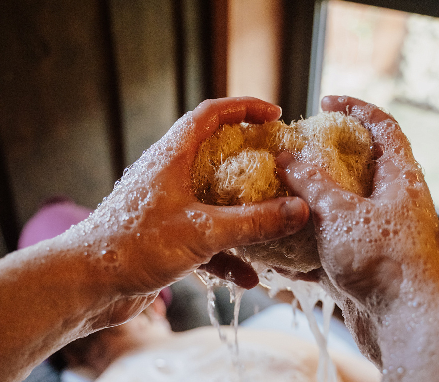 3. Одна и та же жёсткая мочалка «на всё тело» — лучше комбинировать по зонам: мягкая для шеи и внутренней поверхности рук, средняя для ног и спины, жёсткая — точечно.