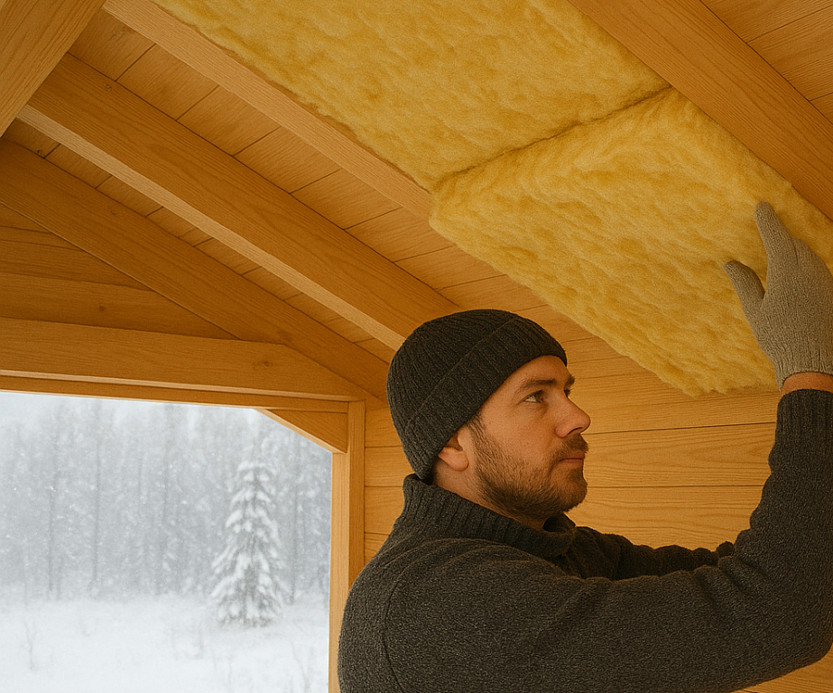 Выполняется после того, как конструкция закрыта и нет протечек. Для бань рекомендуются специальные теплоизоляционные схемы и материалы (минеральная вата/базальтовый утеплитель, PIR-плиты для парных участков, фольгированный слой и пароизоляция со стороны помещения).