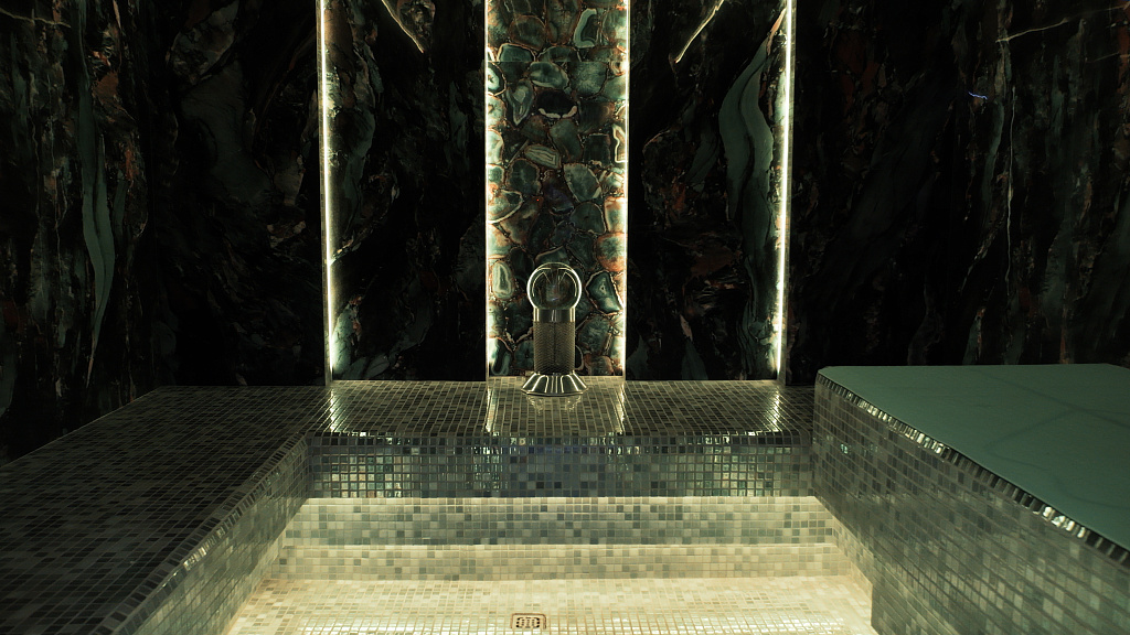 - Плитка также упрощает санитарный уход. Моющие и дезинфицирующие средства, разрешённые для общественных бань и саун, рассчитаны именно на минеральные поверхности. Дерево и композитные материалы таких нагрузок, как правило, не выдерживают.