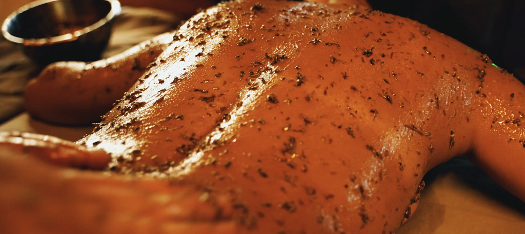 Лёгкий массаж во время скрабирования стимулирует капиллярный кровоток. Это особенно заметно в бане, где сосуды уже расширены теплом.