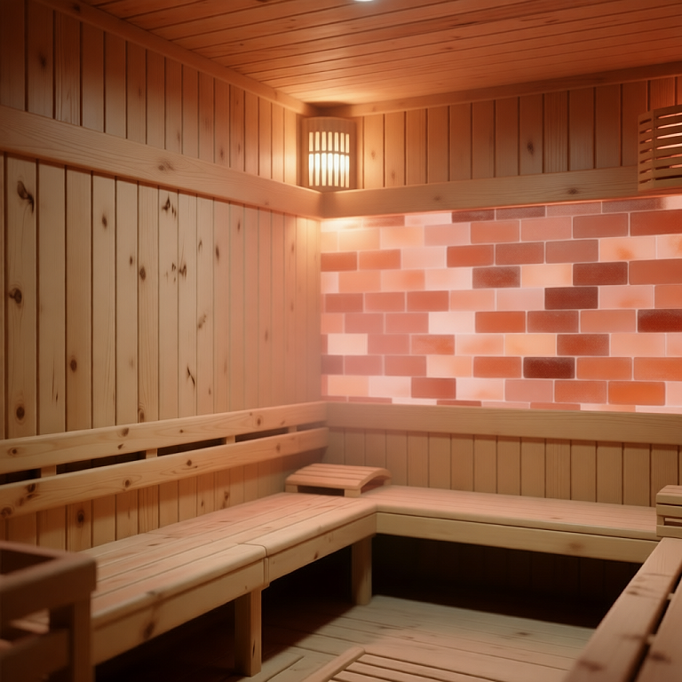 В коммерческих саунах и СПА часто используют блоки соли (соляные кирпичи) для создания декоративных соляных стен и панелей.